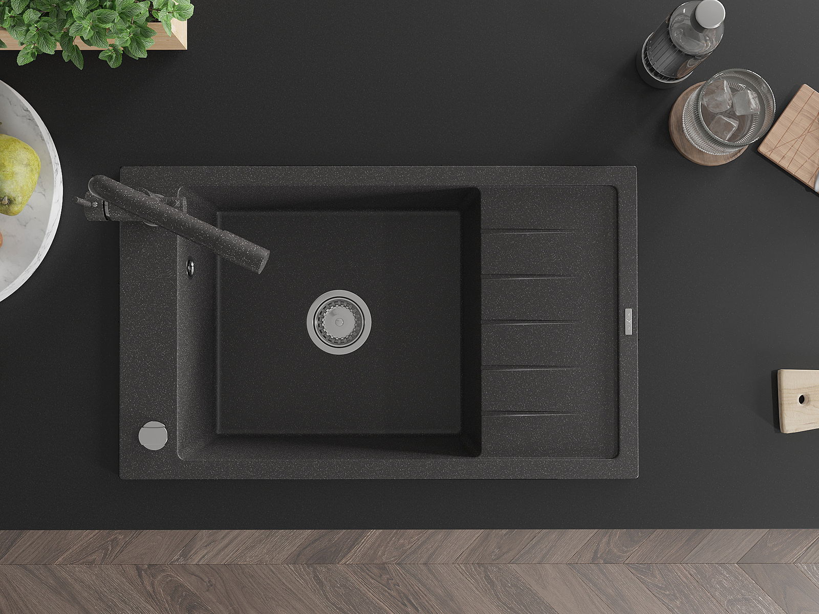 Kriauklės paviršius yra atsparūs dėmėms ir spalvos pasikeitimui, dėl kurio lengva valyti ir ilgą laiką išlaikyti savo spalvą. Estetinis ir praktiškai papildantis kiekvieną virtuvę.