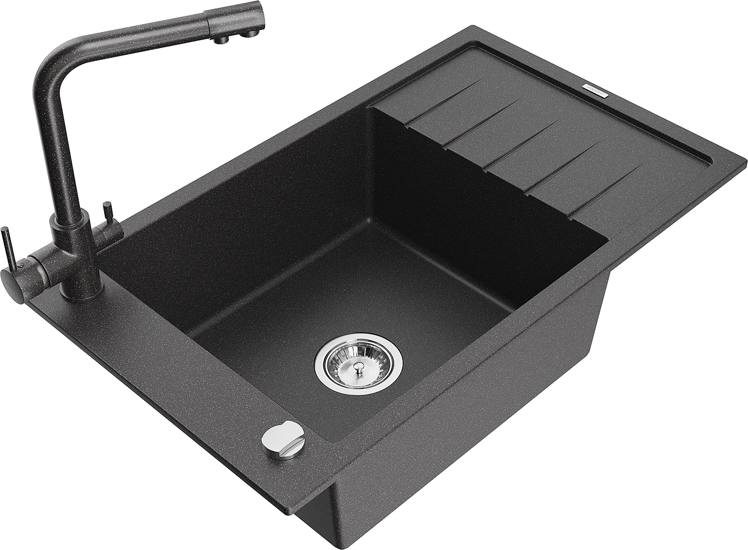 Mexen Elias granito plautuvė 1-dubens su nusausintuvu ir virtuviniu maišytuvu Duero, juodas taškuotas - 6511-76-671600-76