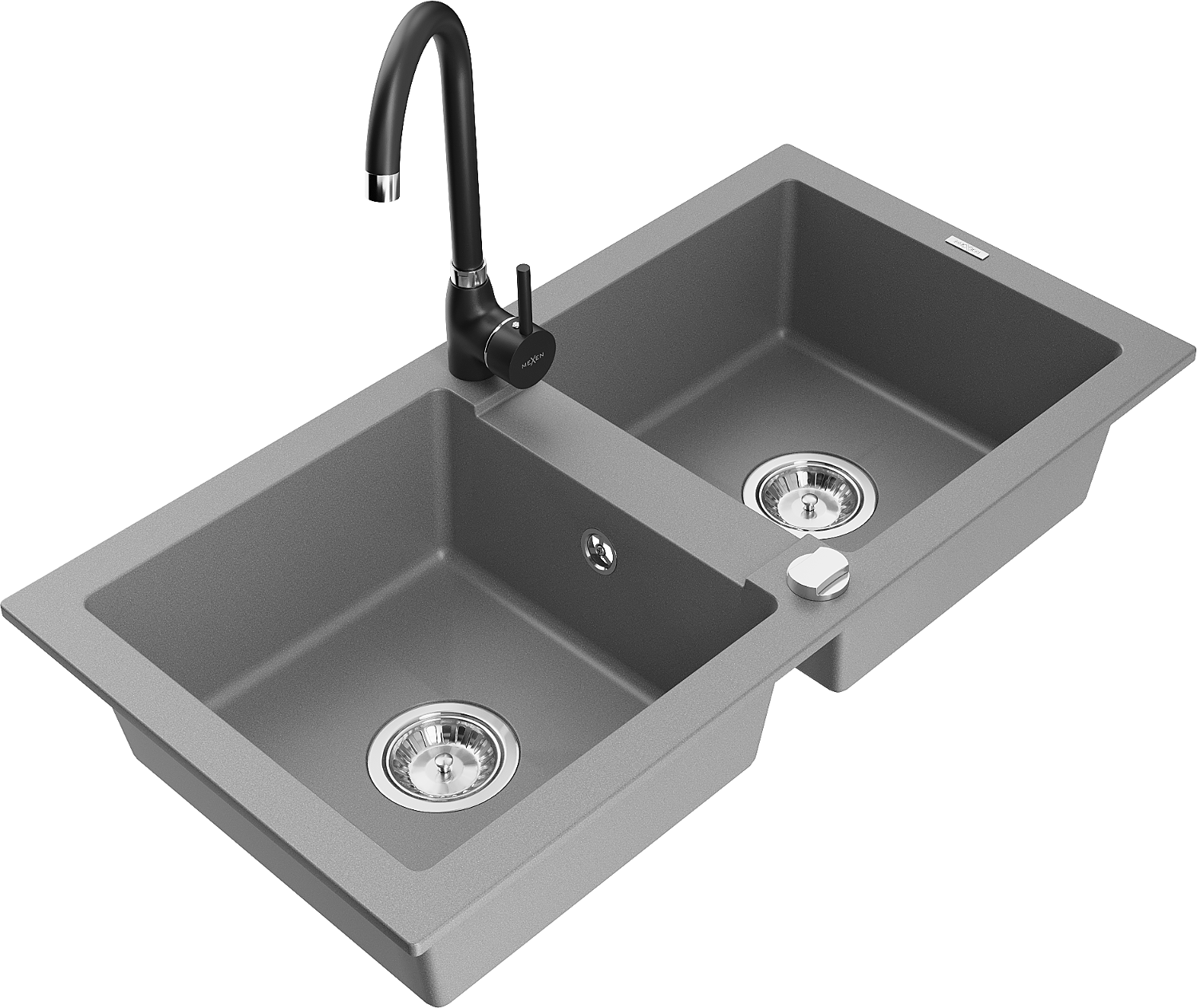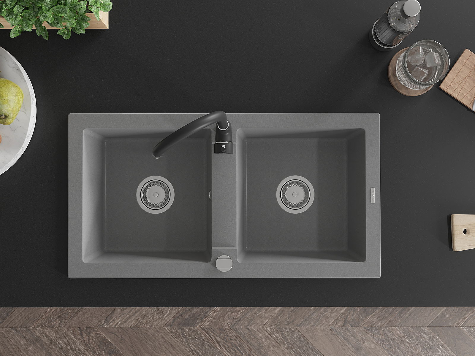 Mexen Mario granito plautuvė su dviem kameromis ir Telma virtuviniu maišytuvu, pilkas - 6504-71-670200-70
