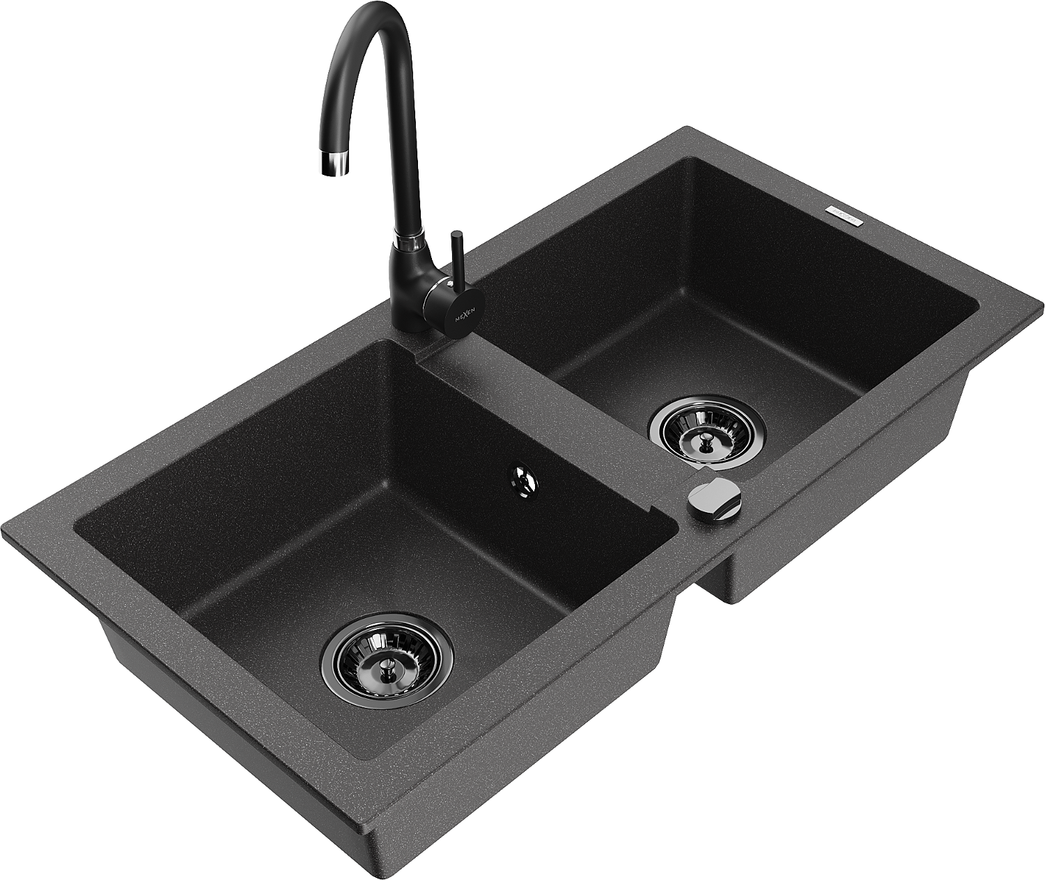 Mexen Mario dvigubas granito plautuvas su Telma virtuviniu maišytuvu, juodai taškuotas - 6504-76-670200-70-B