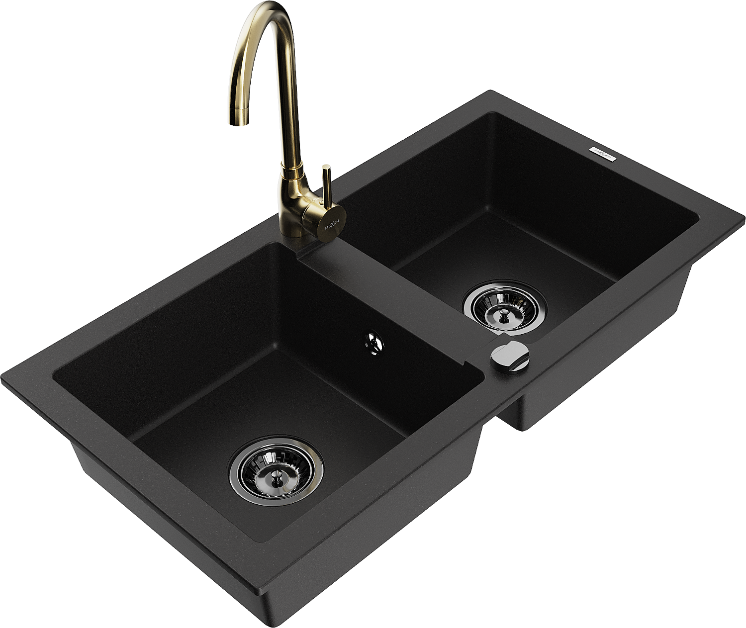 Mexen Mario granito kriauklė 2 skyrių su virtuviniu maišytuvu Telma, juoda - 6504-77-670200-50-B