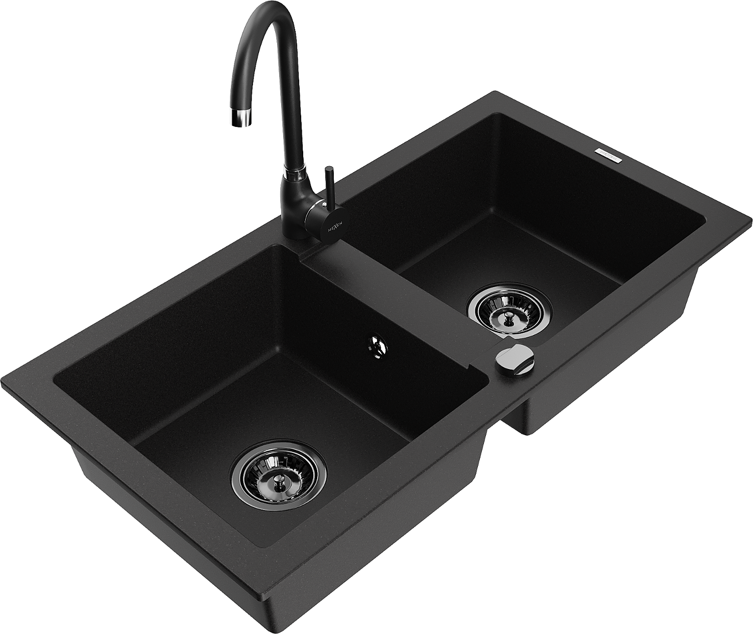 Mexen Mario granitinis dviejų skyrių kriauklė su virtuviniu maišytuvu Telma, juodas - 6504-77-670200-70-B