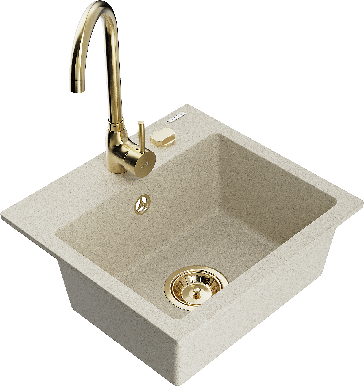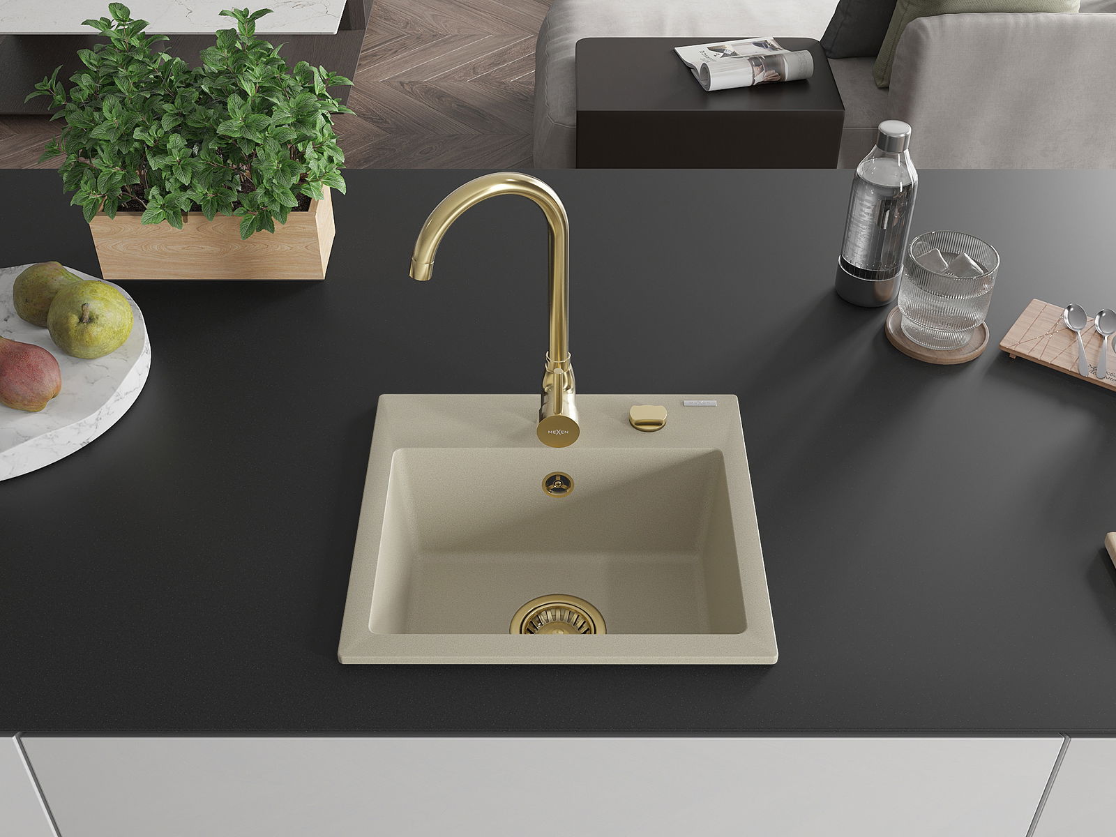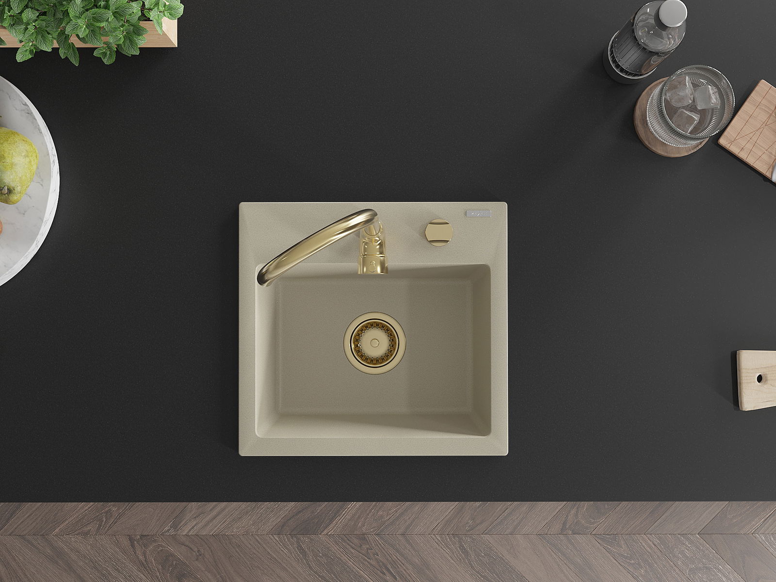 Mexen Milo granitinis plautuvė 1 skyrelio su virtuvės maišytuvu Telma, smėlio spalvos - 6505-69-670200-50
