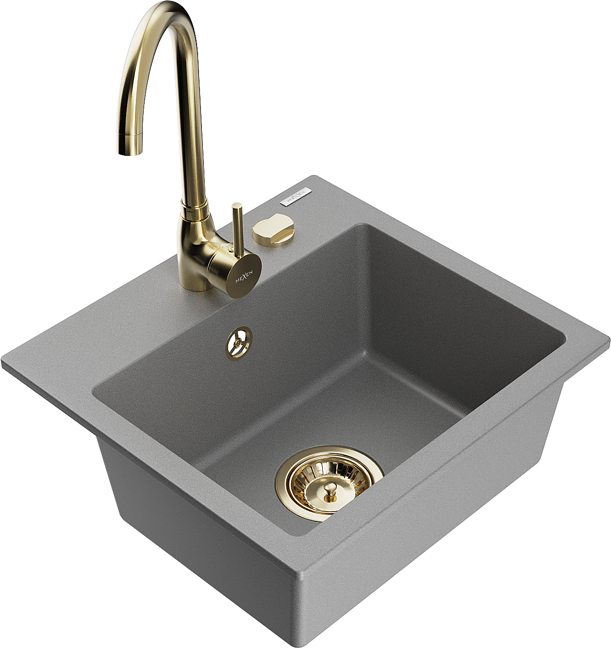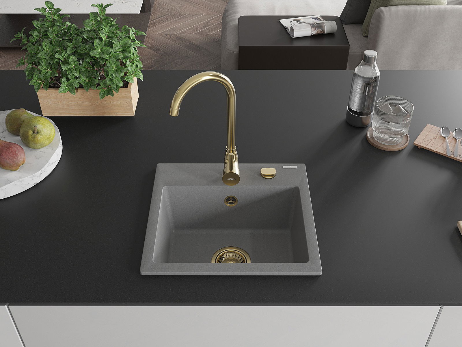 Mexen Milo granitinė vienos dubens plautuvė su virtuviniu maišytuvu Telma, pilka - 6505-71-670200-50