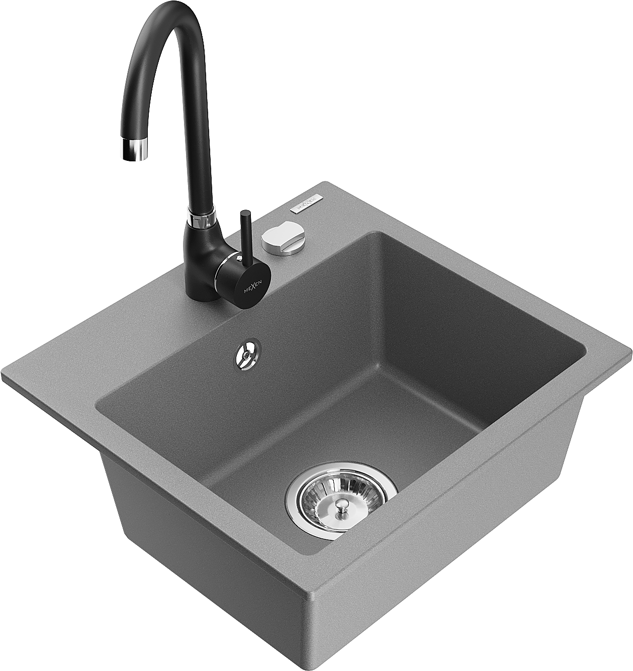 Mexen Milo granitinė vienos plautuvės kriauklė su virtuvės maišytuvu Telma, pilka - 6505-71-670200-70