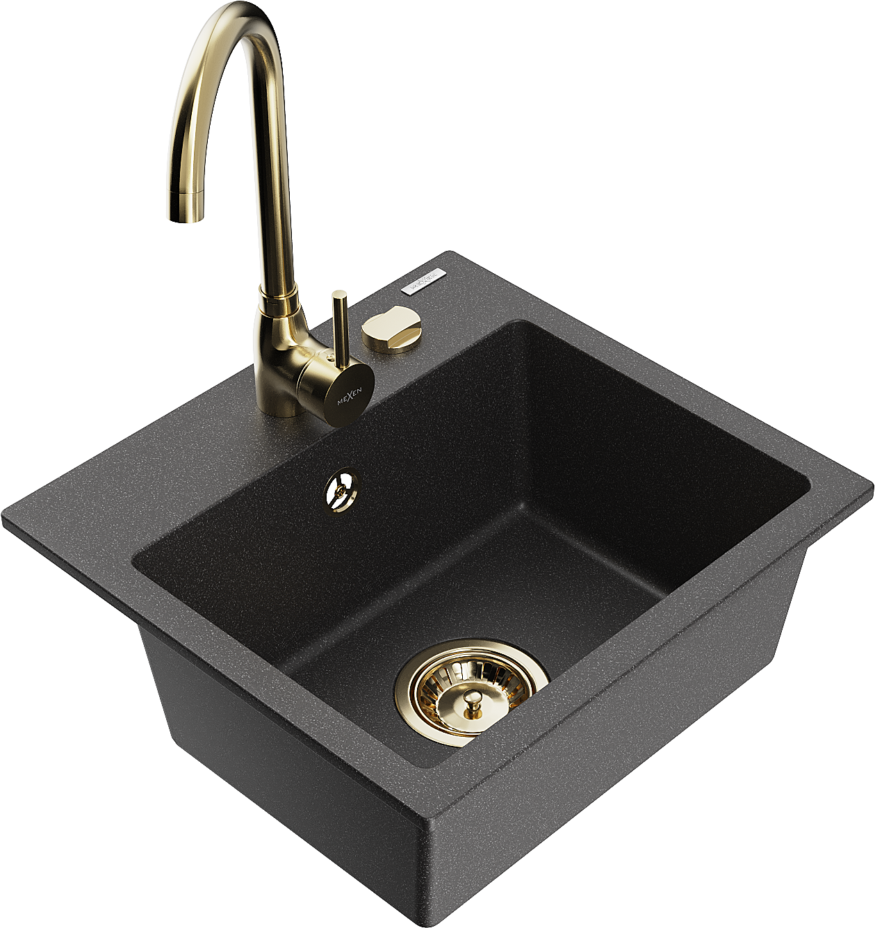 Mexen Milo granitinė vienos talpos plautuvė su virtuviniu maišytuvu Telma, juoda taškuota - 6505-76-670200-50