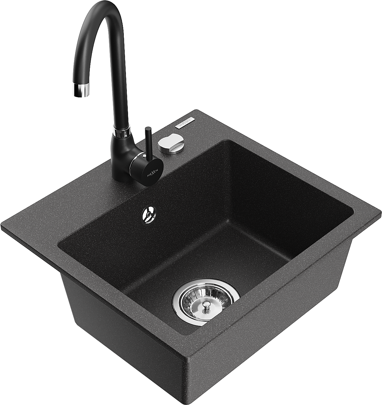 Mexen Milo granito plautuvė su 1 skyriumi ir virtuviniu maišytuvu Telma, juodas taškuotas - 6505-76-670200-70