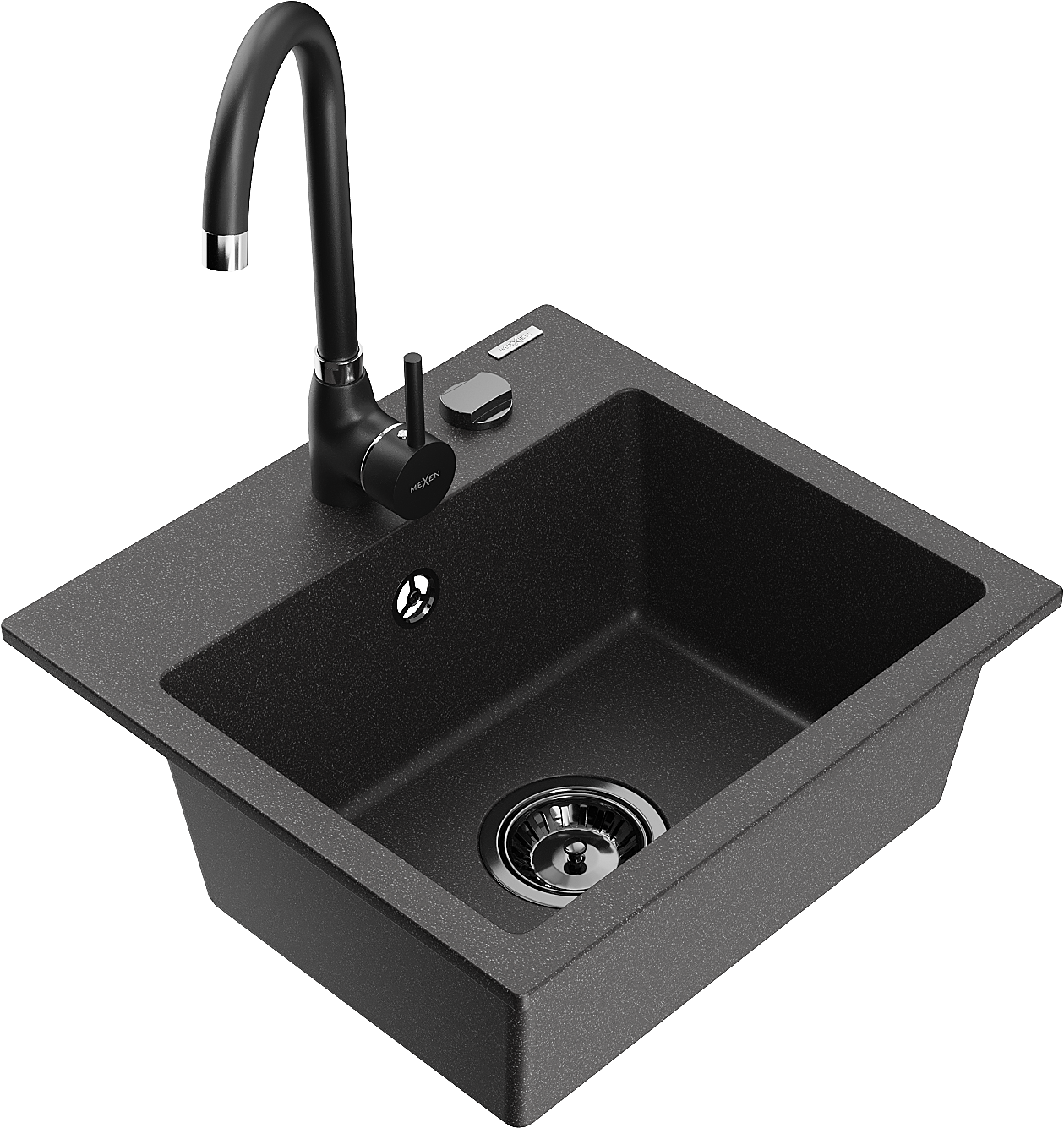 Mexen Milo granitinis vienos kameros virtuvės kriauklė su maišytuvu Telma, juoda taškuota - 66505-76-670200-70-B