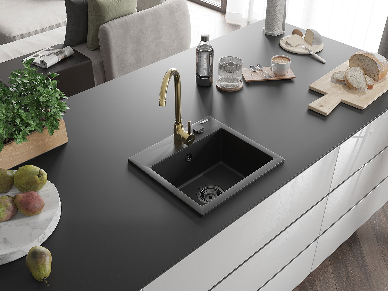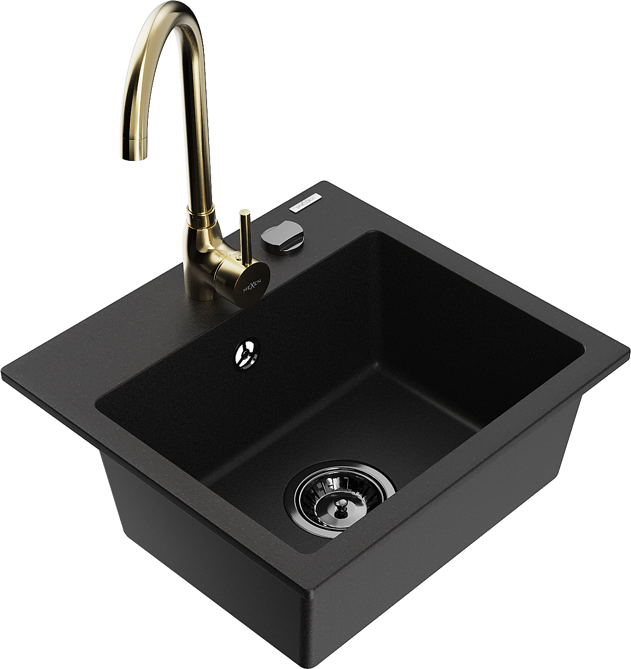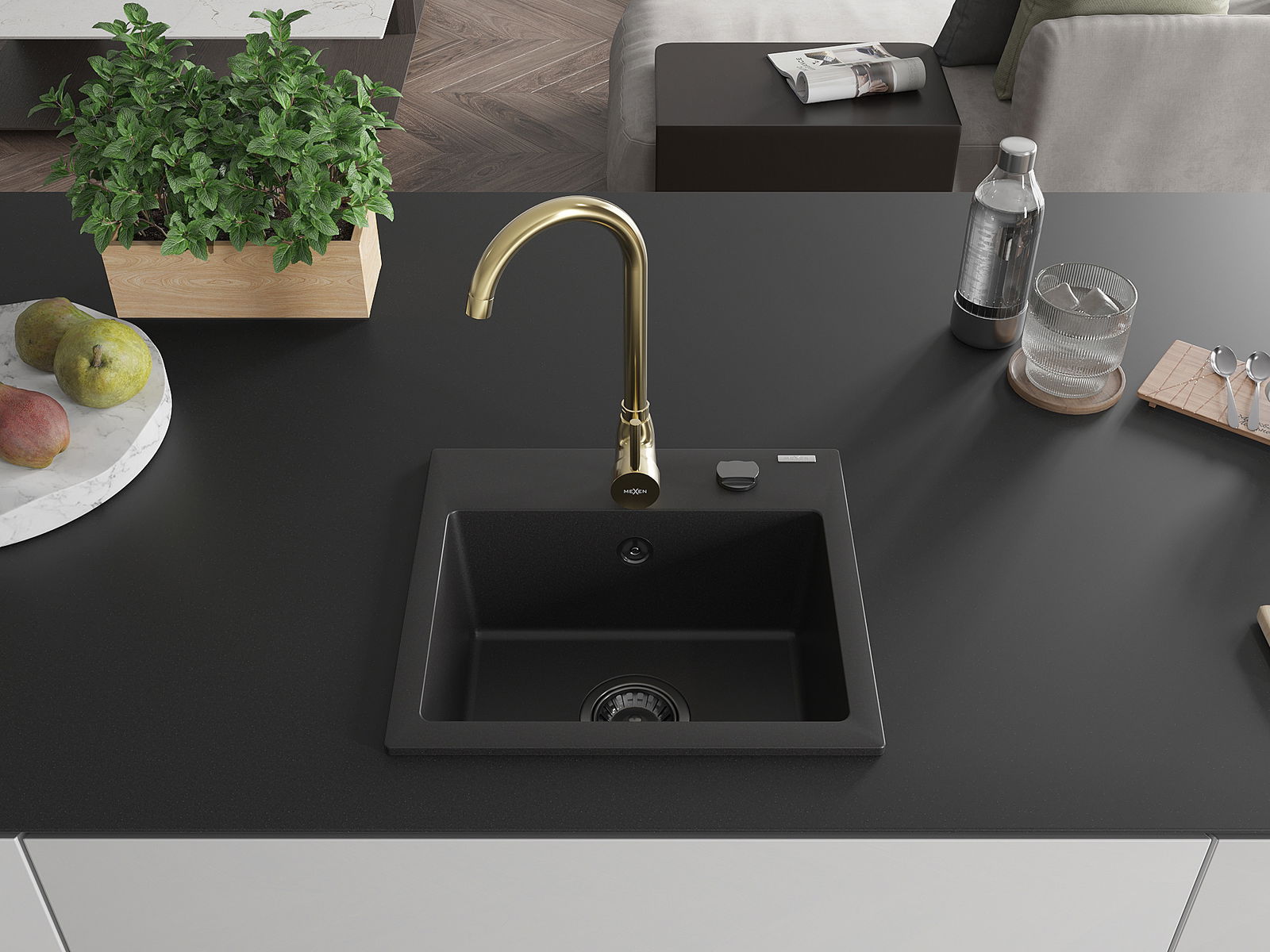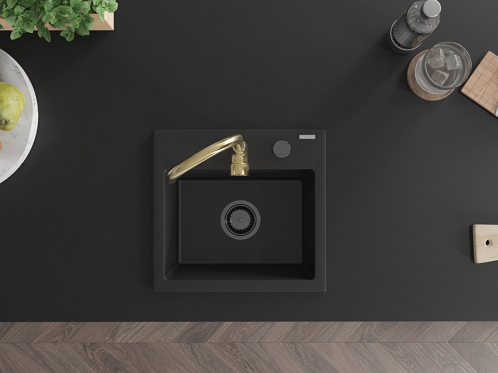 Mexen Milo granito plautuvė su viena kamera ir virtuviniu maišytuvu Telma, juoda - 6505-77-670200-50-B