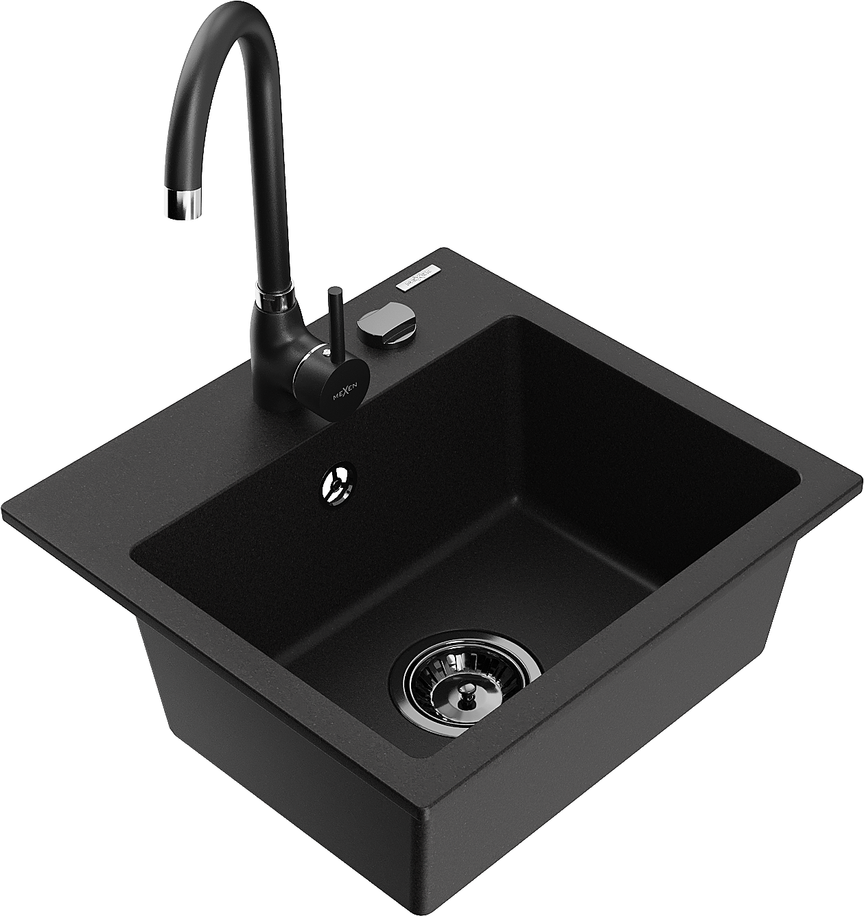 Mexen Milo granito praustuvas, 1-sekcijos su virtuviniu maišytuvu Telma, juodas - 6505-77-670200-70-B