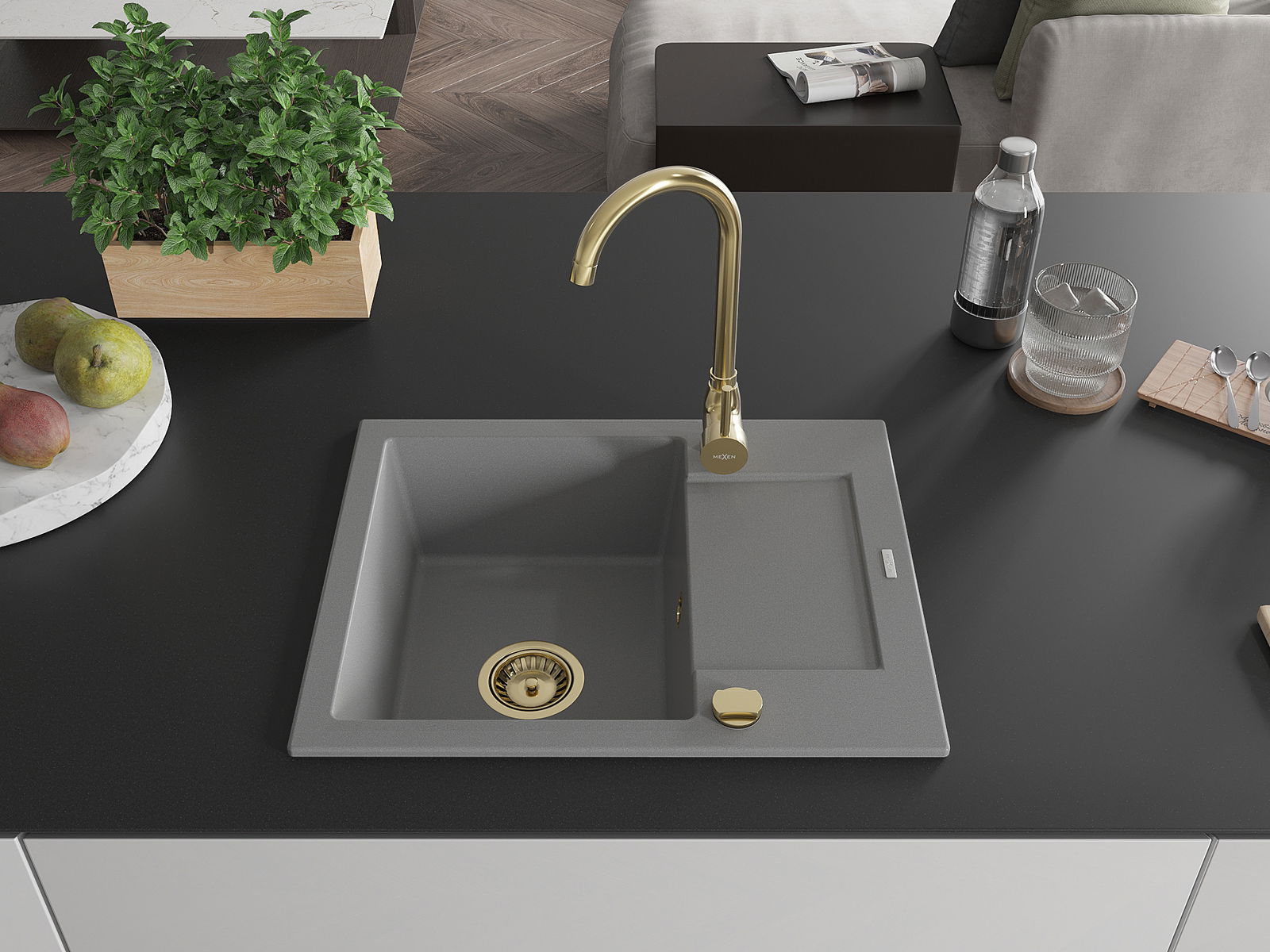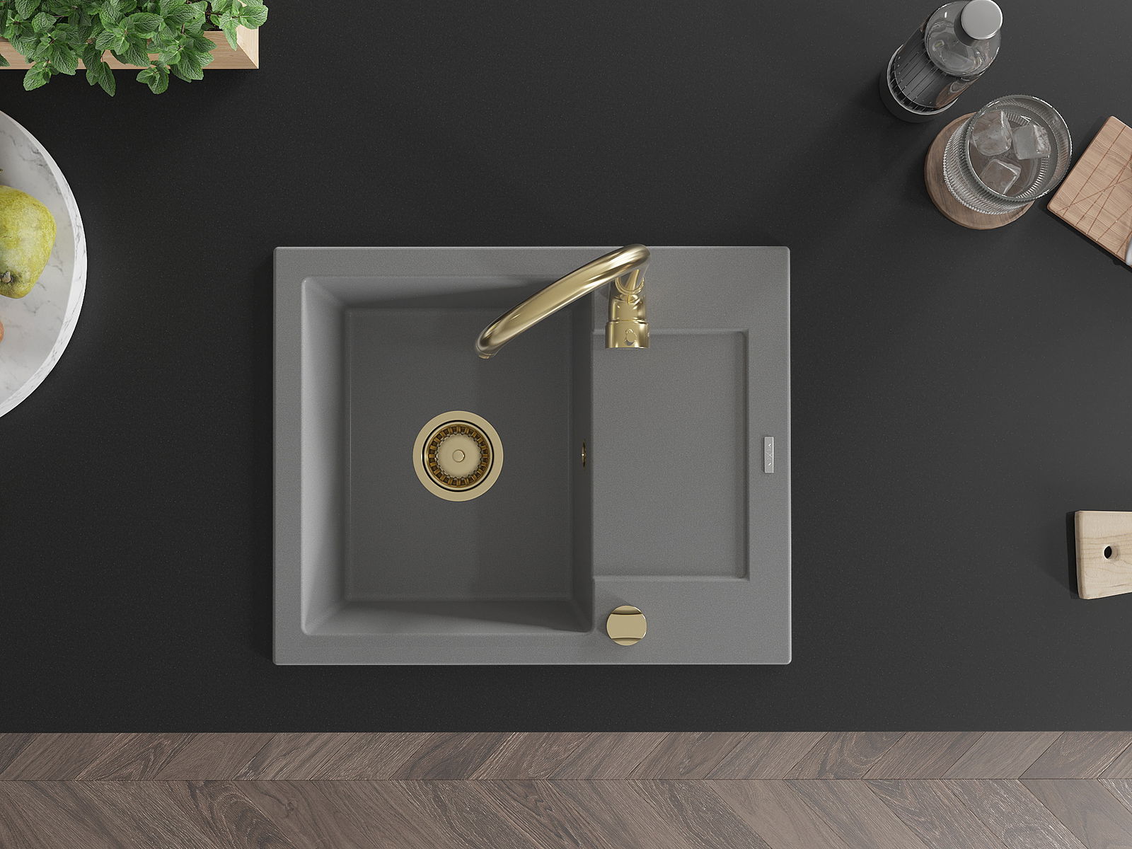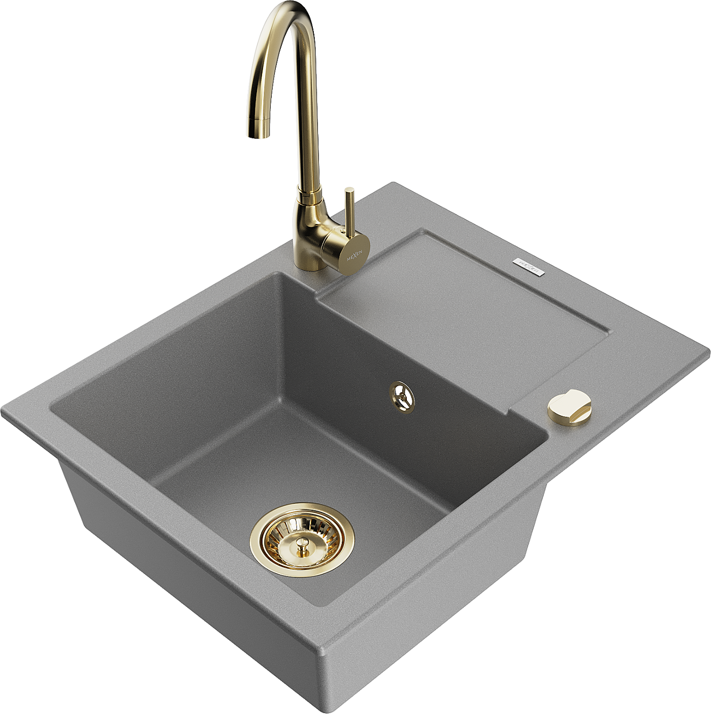 Mexen Enzo vienos sekcijos granito plautuvė su nutekamu ir virtuviniu čiaupu Telma, pilka - 6506-71-670200-50