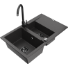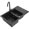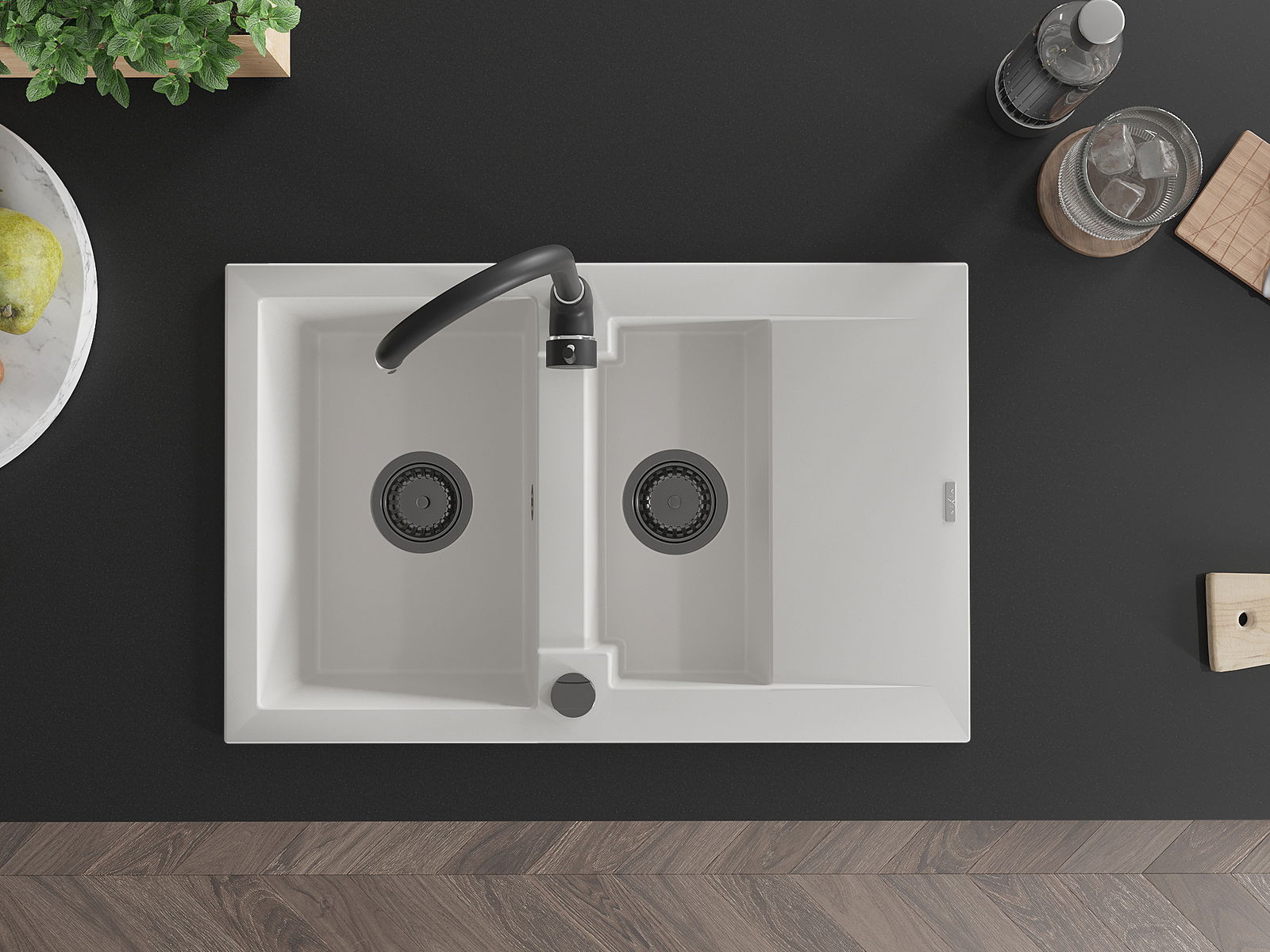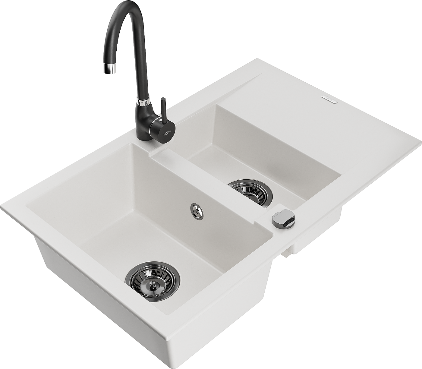Mexen Gaspar granitinė 1,5 kamerų kriauklė su nutekėjimu ir virtuviniu maišytuvu Telma, balta - 6507-20-670200-70