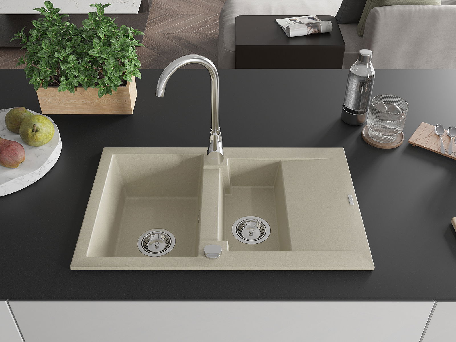 Kriauklės paviršius yra atsparūs dėmėms ir spalvos pasikeitimui, dėl kurio lengva valyti ir ilgą laiką išlaikyti savo spalvą. Estetinis ir praktiškai papildantis kiekvieną virtuvę.