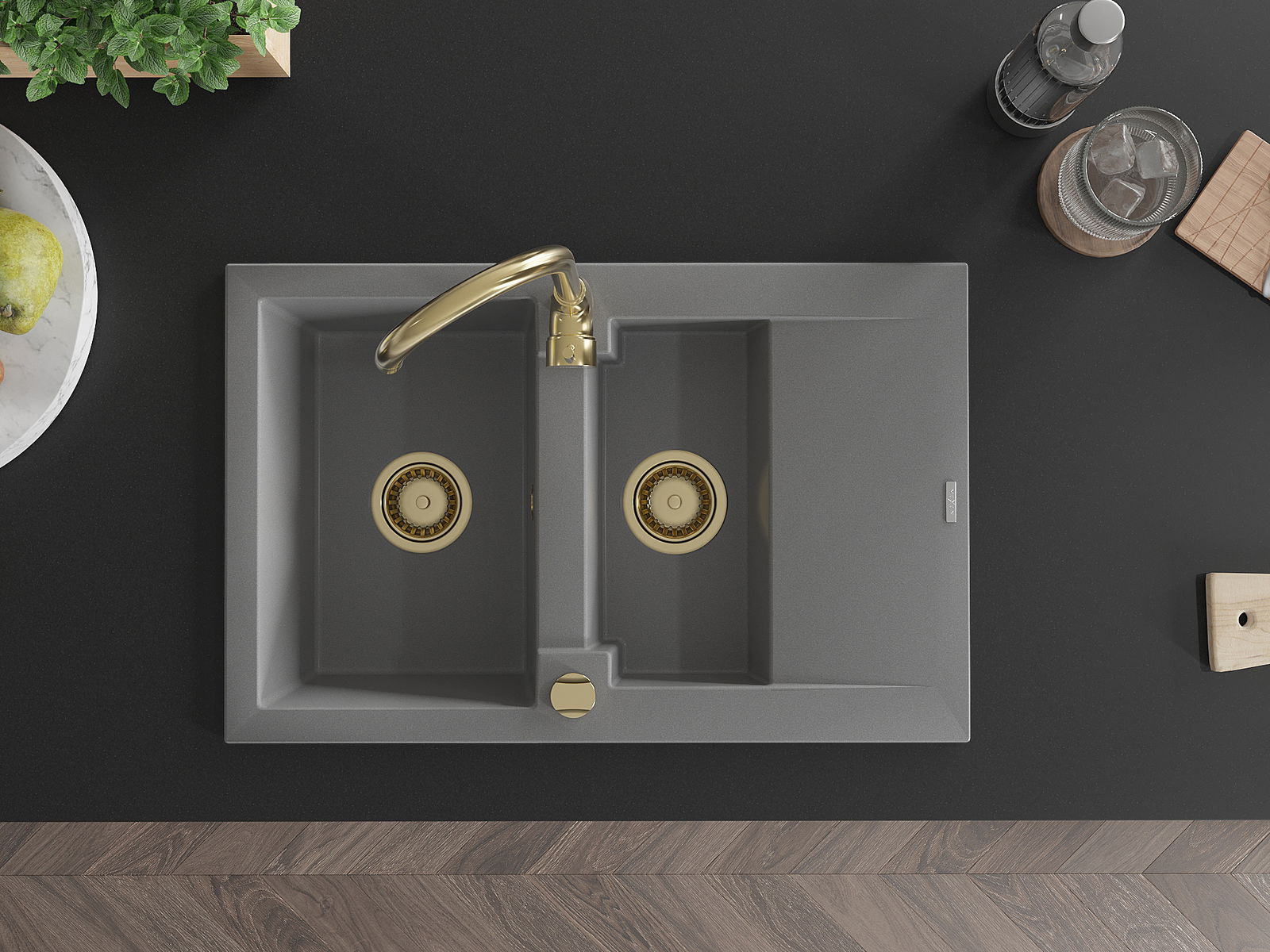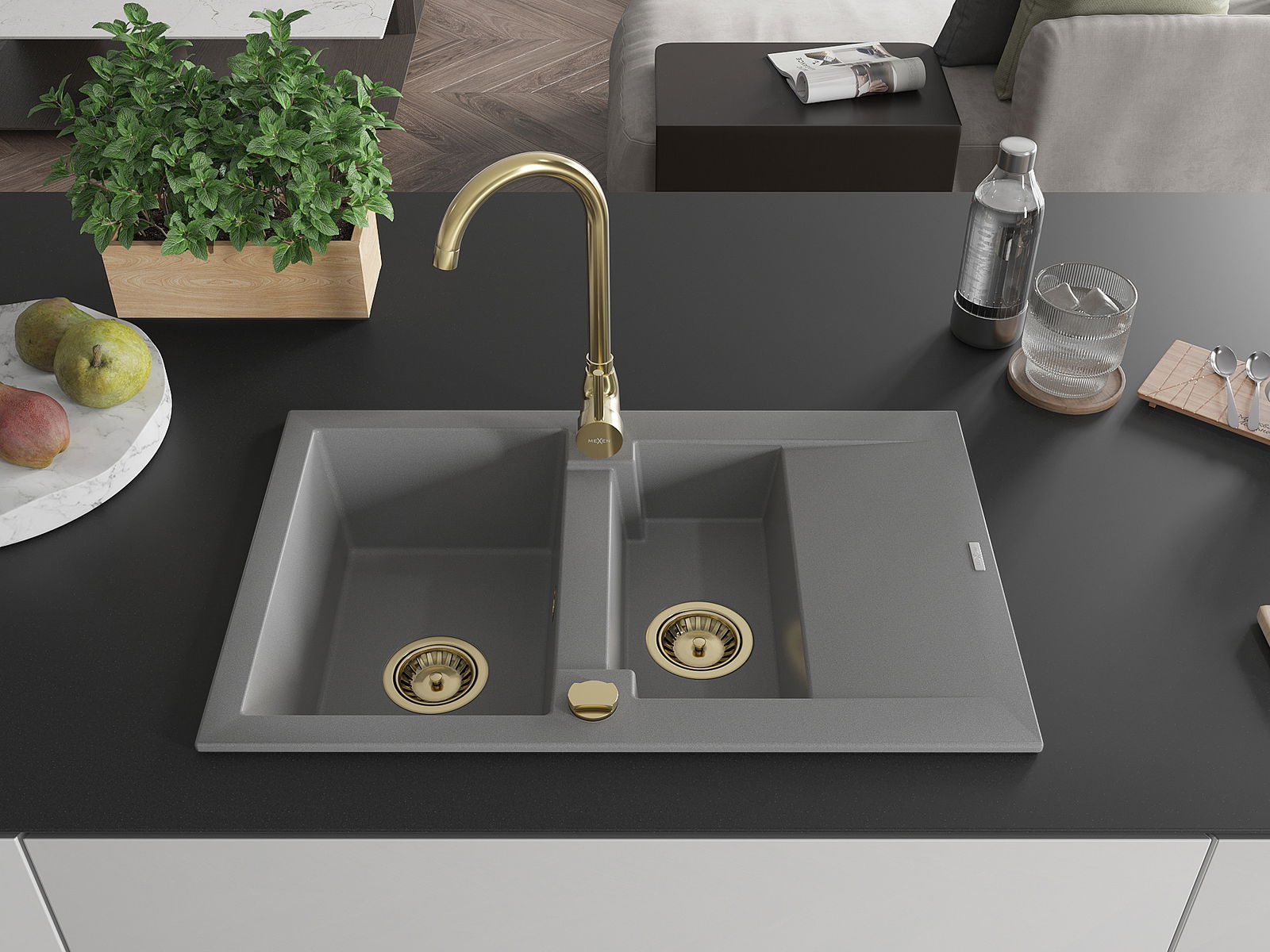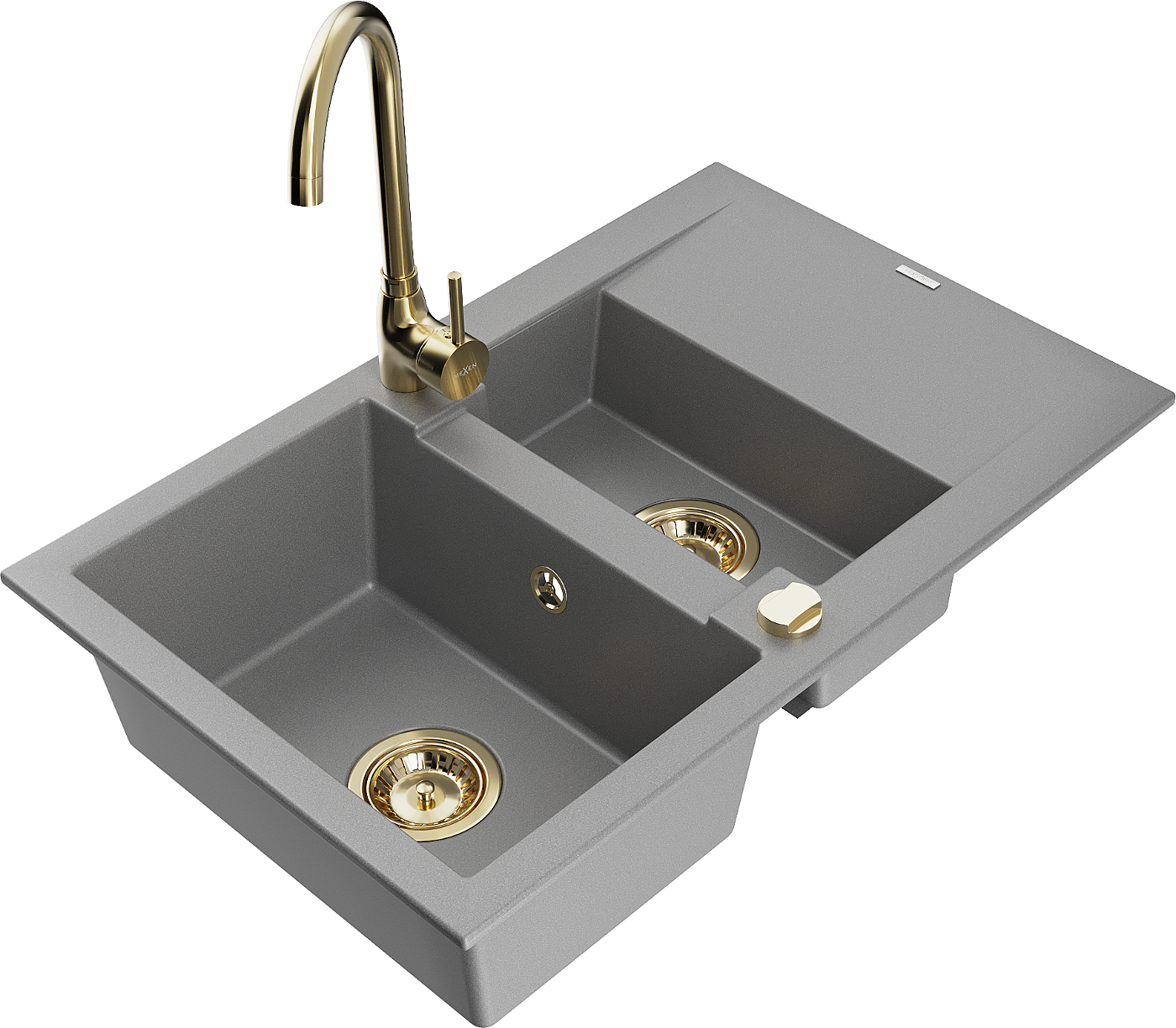 Mexen Gaspar granito plautuvė 1,5 skyrių su indų džiovintuvu ir virtuviniu maišytuvu Telma, pilkas - 6507-71-670200-50