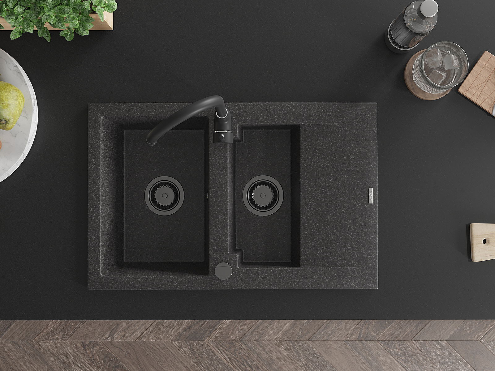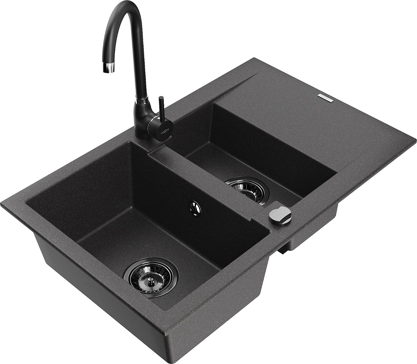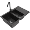 Mexen Gaspar granito plautuvė 1,5 kamerų su nutekamu ir virtuvės maišytuvu Telma, juodas dėmėtas - 6507-76-670200-70-B