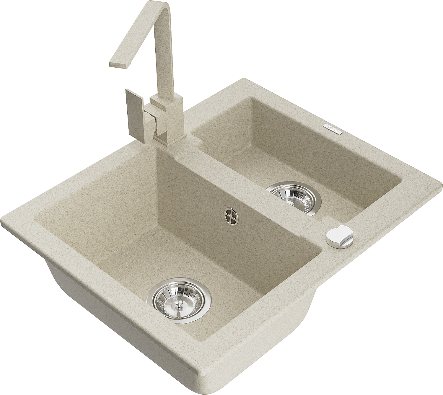 Mexen Carlos granitinis 1,5 skylių plautuvas su Rita virtuvės maišytuvu, smėlio spalvos - 6518-69-670300-69