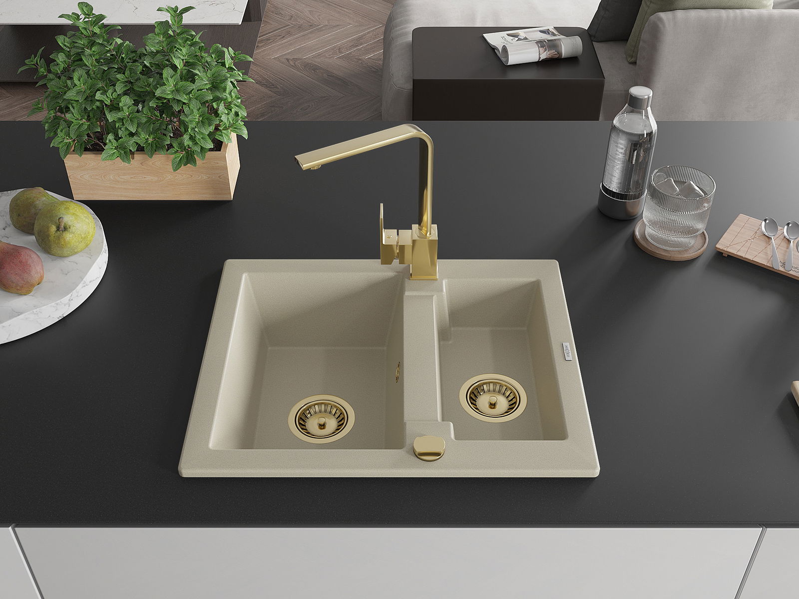 Kriauklės paviršius yra atsparūs dėmėms ir spalvos pasikeitimui, dėl kurio lengva valyti ir ilgą laiką išlaikyti savo spalvą. Estetinis ir praktiškai papildantis kiekvieną virtuvę.
