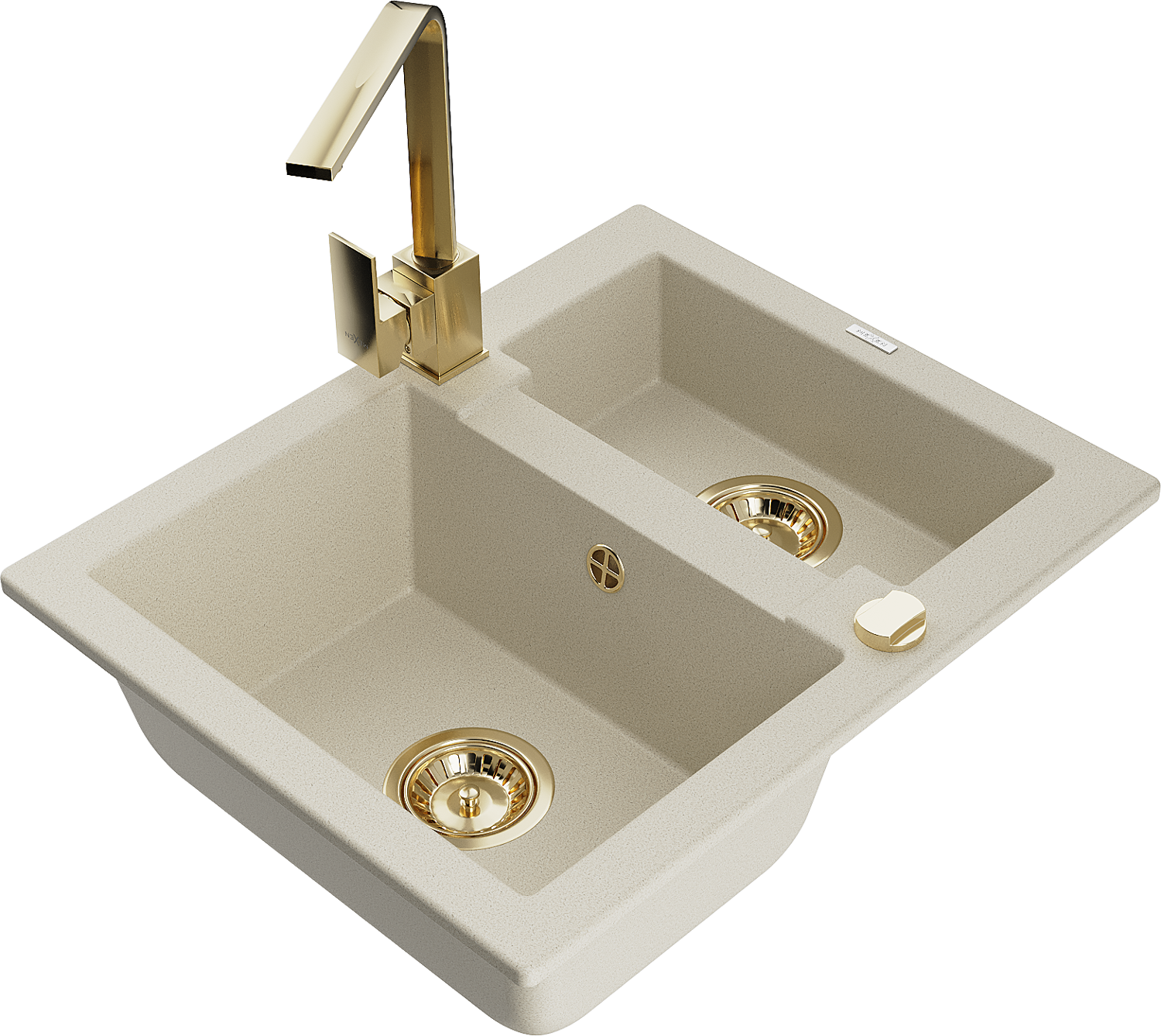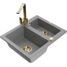 Mexen Carlos granitinis virtuvės kriauklė 1,5 kameros su virtuviniu maišytuvu Rita, smėlio spalvos - 6518-69-670300-50
