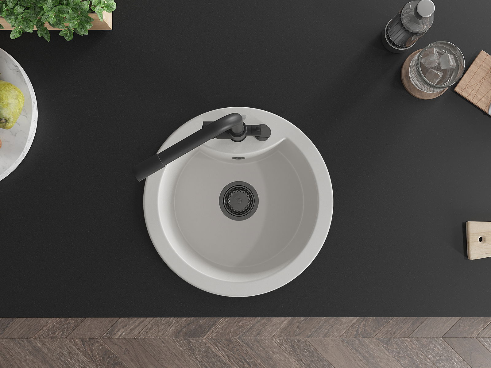 Kriauklės paviršius yra atsparūs dėmėms ir spalvos pasikeitimui, dėl kurio lengva valyti ir ilgą laiką išlaikyti savo spalvą. Estetinis ir praktiškai papildantis kiekvieną virtuvę.