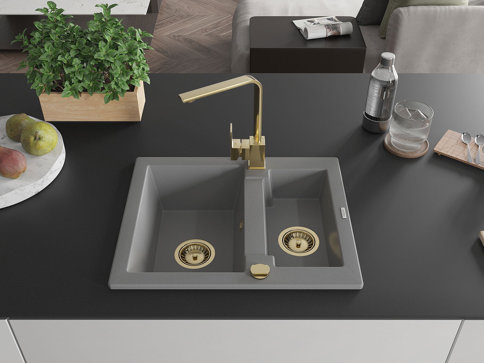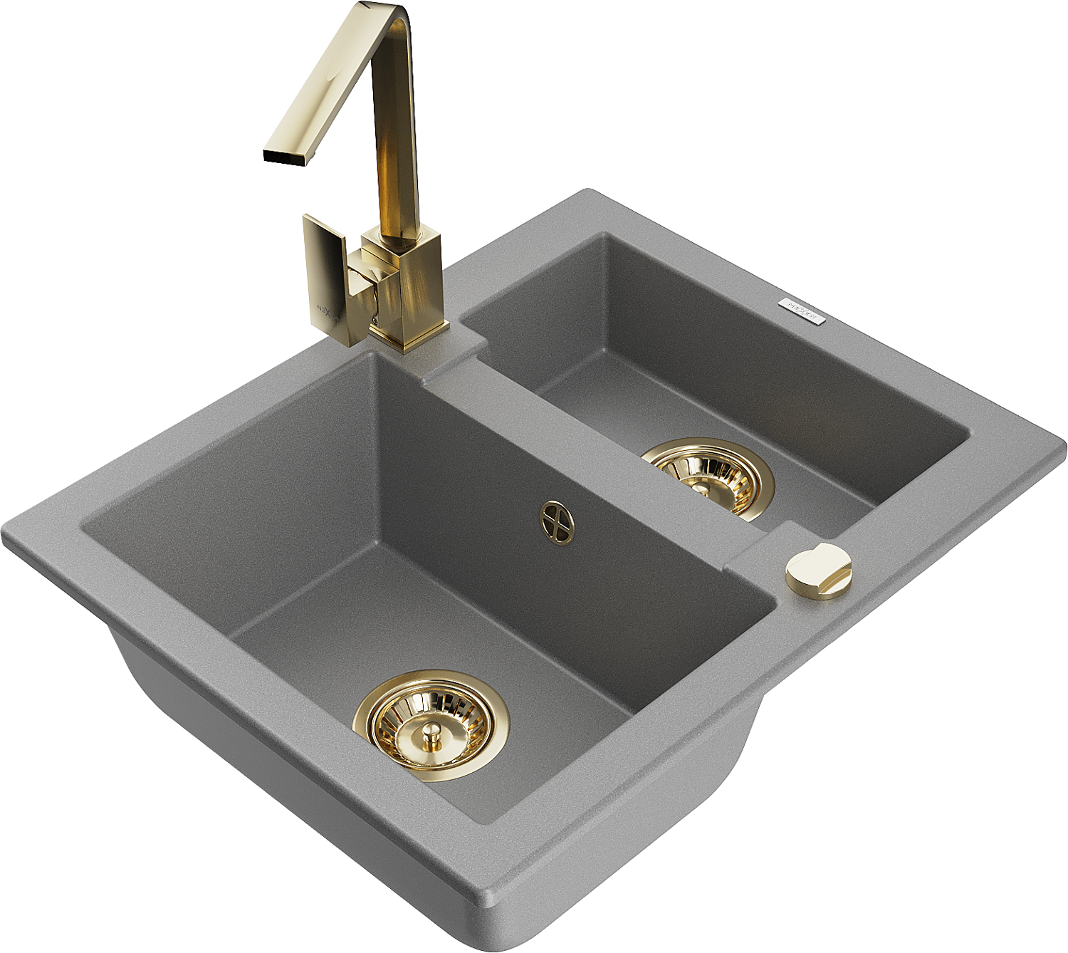 Mexen Carlos granito plautuvė 1,5-dėžutė su virtuvės čiaupu Rita, pilka - 6518-71-670300-50