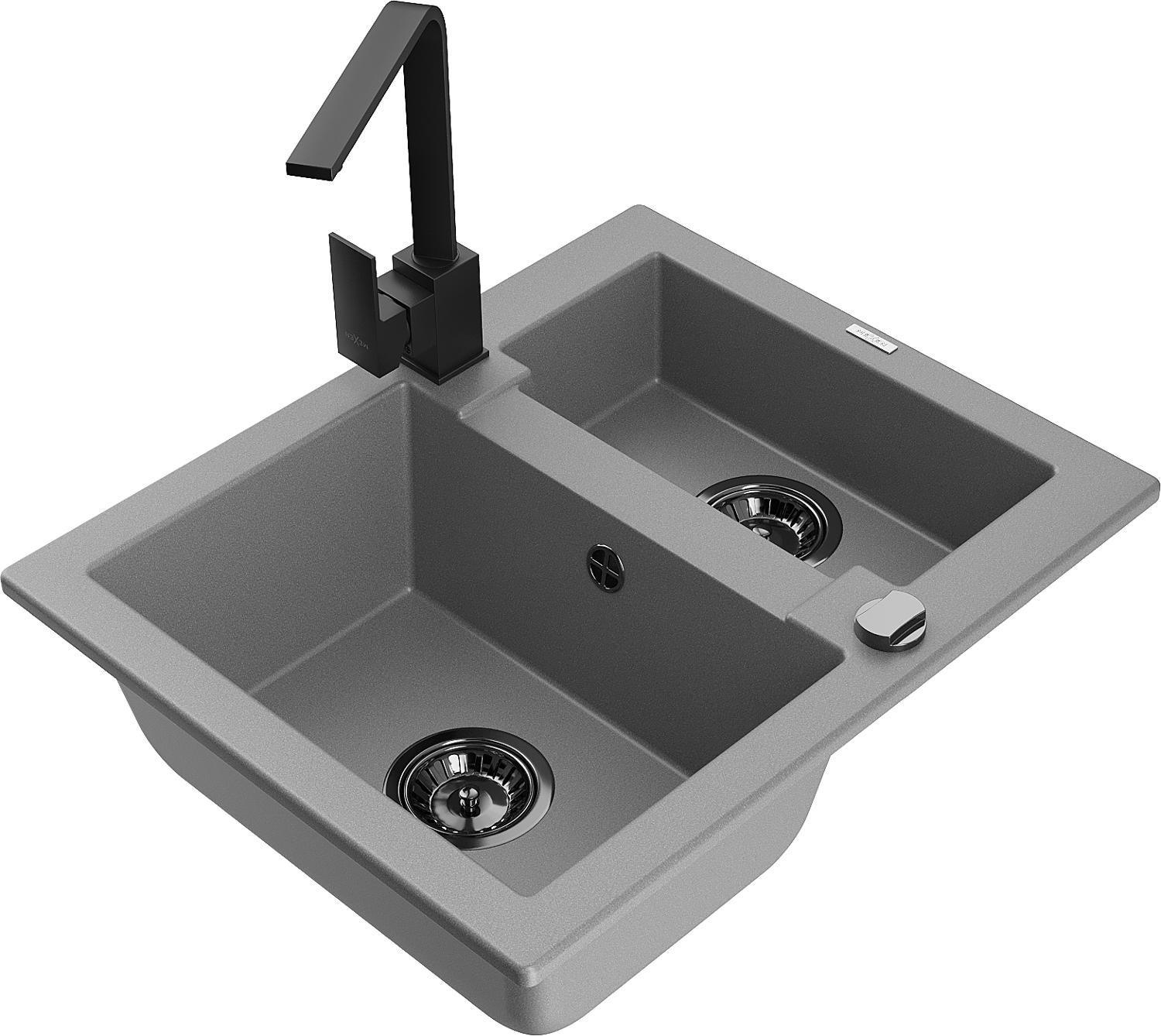 Mexen Carlos granito plautuvė 1,5 skylių su virtuvės maišytuvu Rita, pilka - 6518-71-670300-70-B