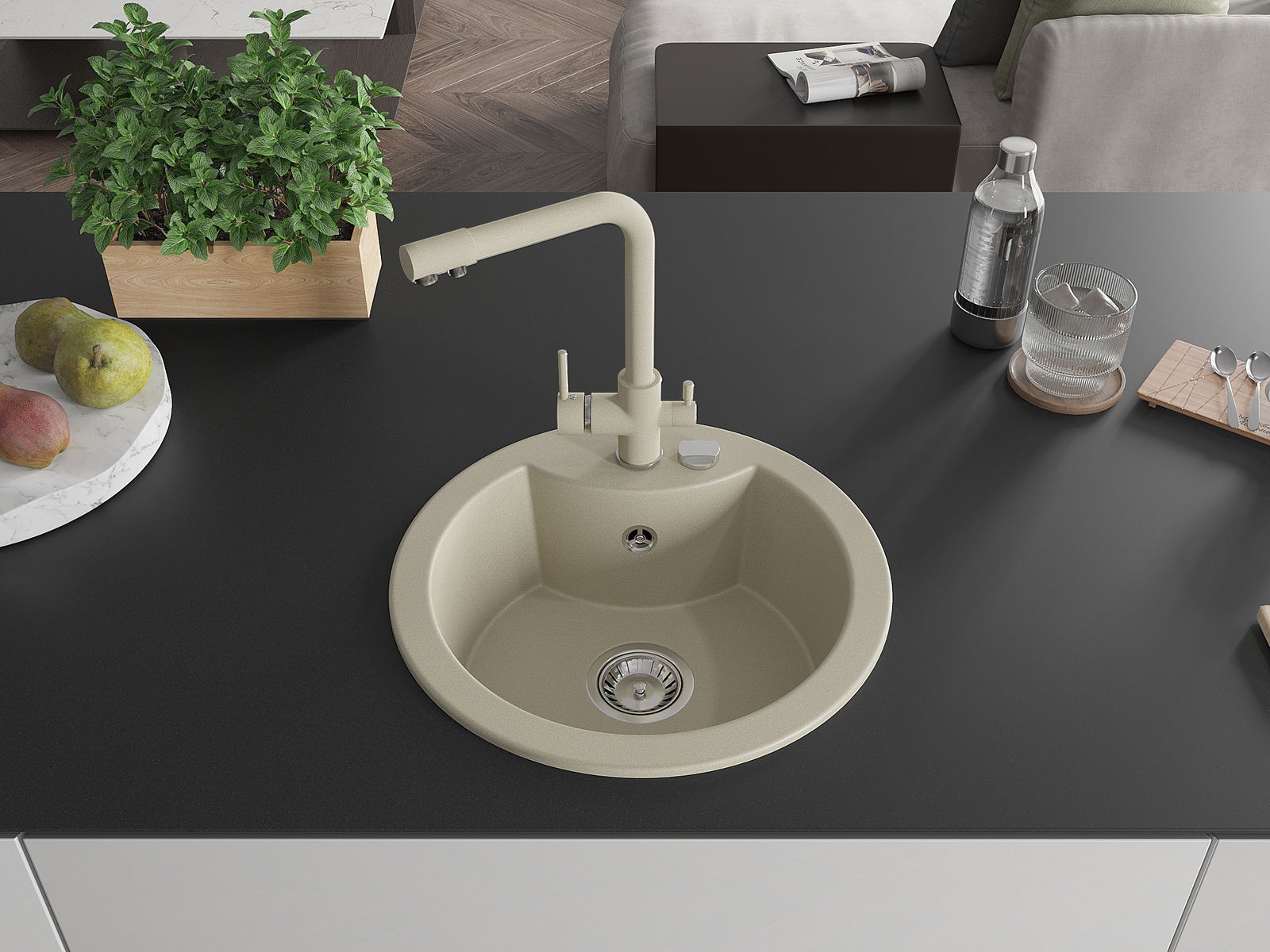 Kriauklės paviršius yra atsparūs dėmėms ir spalvos pasikeitimui, dėl kurio lengva valyti ir ilgą laiką išlaikyti savo spalvą. Estetinis ir praktiškai papildantis kiekvieną virtuvę.