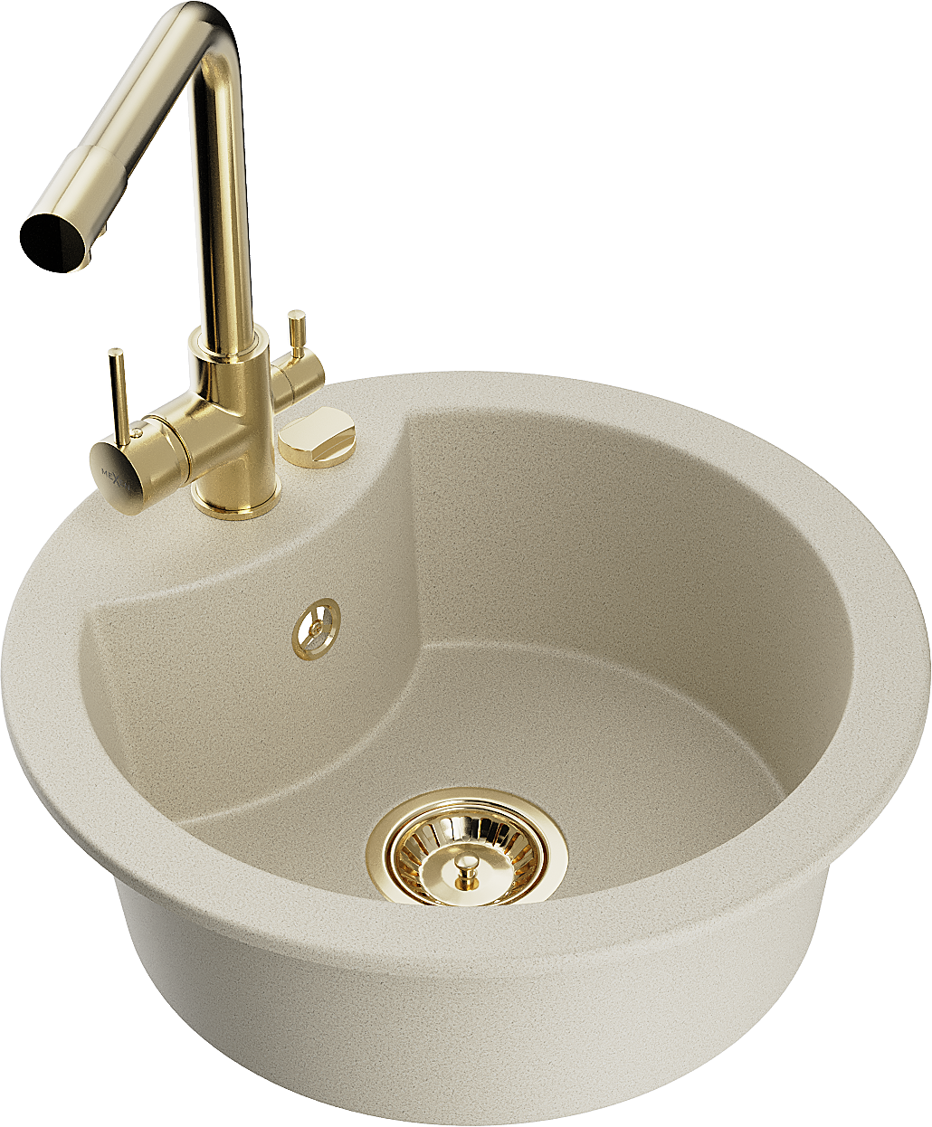 Mexen Diego granitinis vienos kameros virtuvės praustuvas su Duero maišytuvu, smėlio spalvos - 6512-69-671600-50