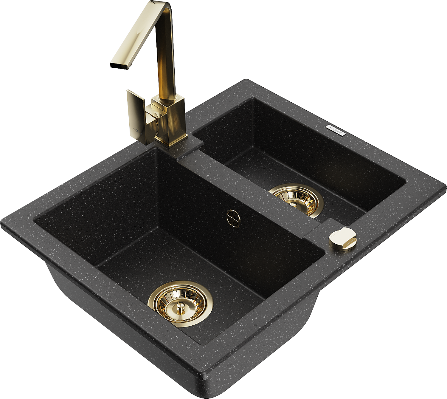 Mexen Carlos granitinė kriauklė 1,5 kamerų su virtuviniu maišytuvu Rita, juodas/sidabrinis metalikas - 6518-73-670300-50