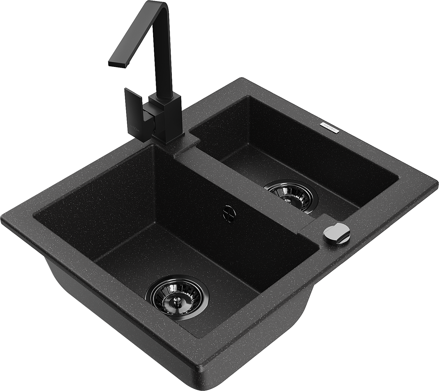 Mexen Carlos granitinė kriauklė 1,5 skyrių su Rita virtuvine baterija, juoda/sidabrinė metalikas - 6518-73-670300-70-B