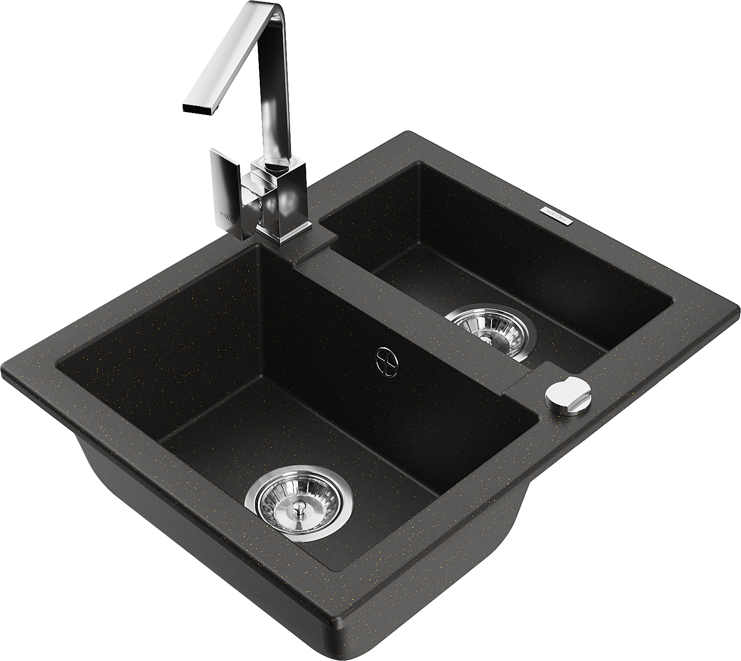 Mexen Carlos granito plautuvė 1,5 kamerų su virtuviniu maišytuvu Rita, juoda/auksinė metalik - 6518-75-670300-00