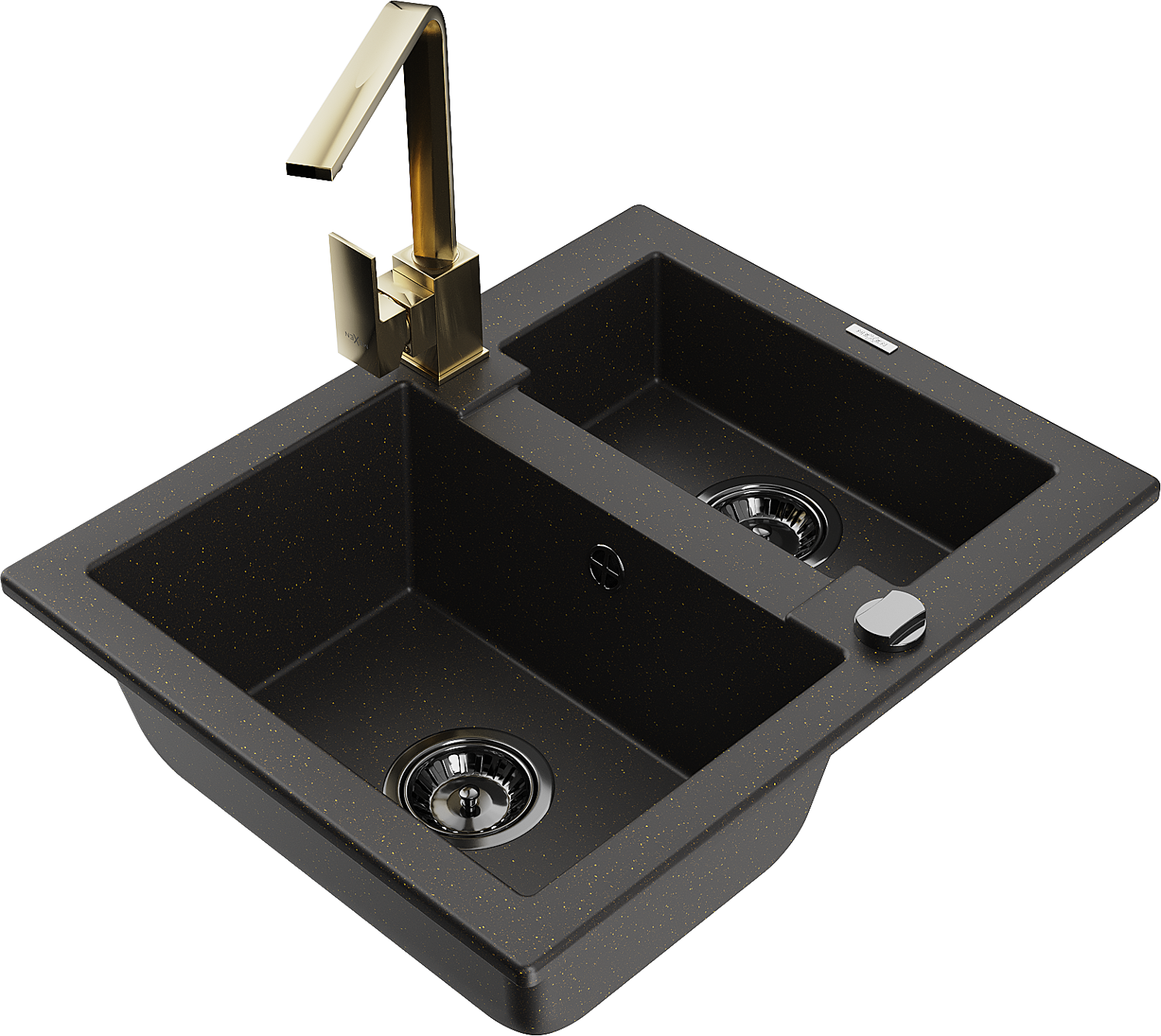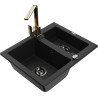 Mexen Carlos granitinė 1,5 kameros plautuvė su virtuviniu maišytuvu Rita, juoda/auksinė metalika - 6518-75-670300-50-B