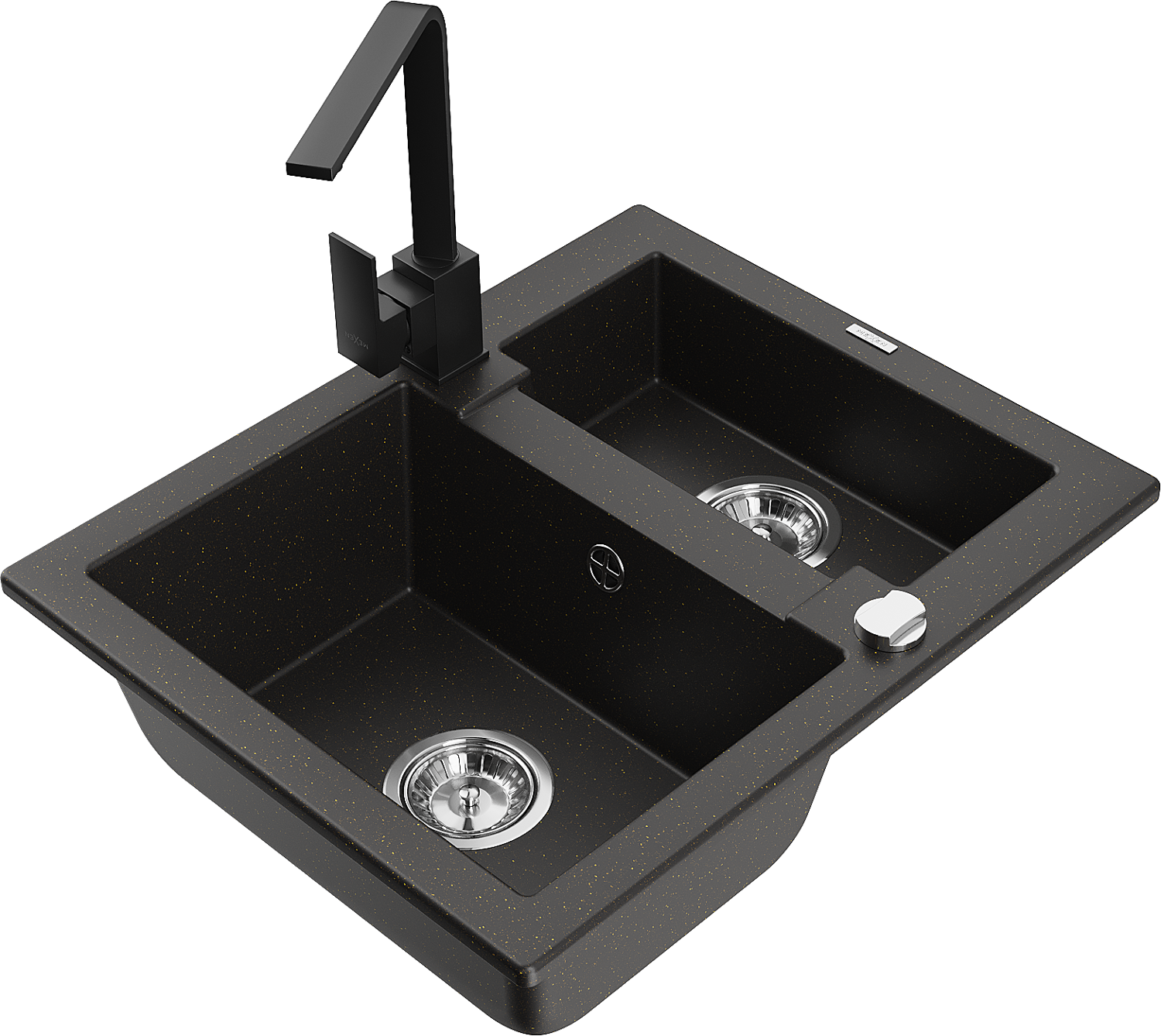 Mexen Carlos granito kriauklė 1,5 sekcijos su virtuviniu maišytuvu Rita, juoda/auksinis metalikas - 6518-75-670300-70