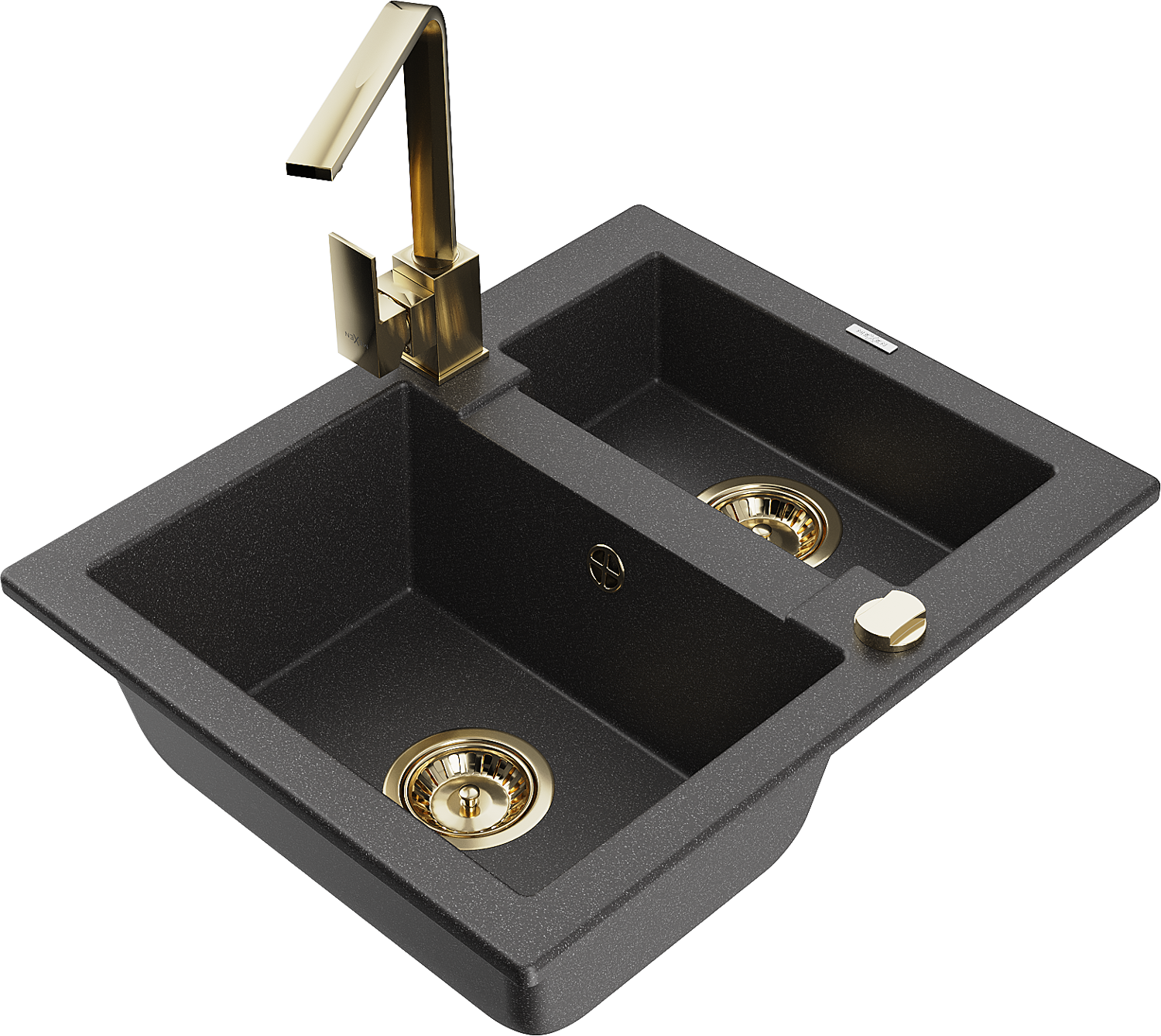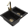 Mexen Carlos granito plautuvė 1,5 kamerų su virtuviniu maišytuvu Rita, juoda su taškeliais - 6518-76-670300-50