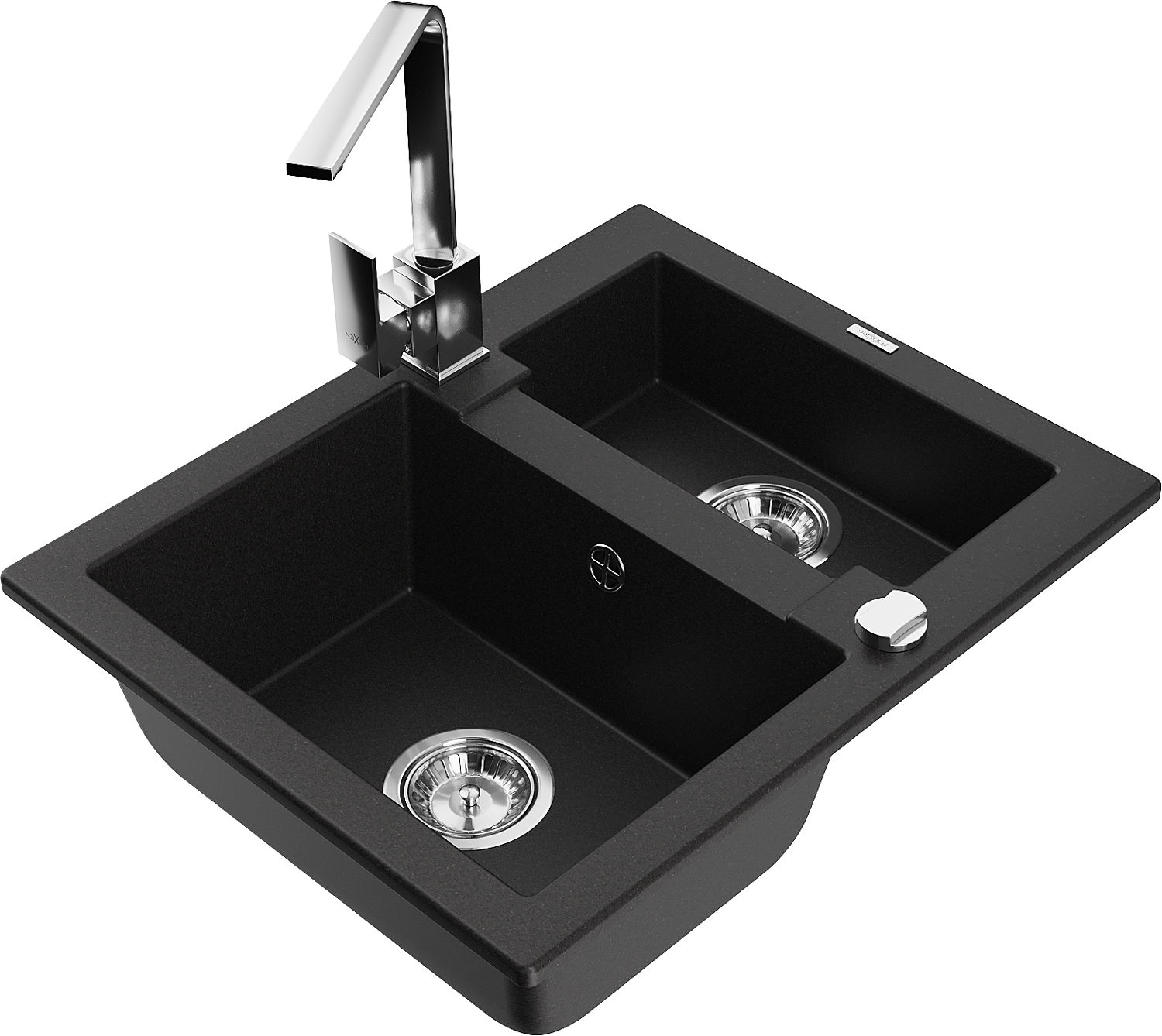 Mexen Carlos granitinė plautuvė 1,5 skyrelio su virtuviniu maišytuvu Rita, juoda - 6518-77-670300-00