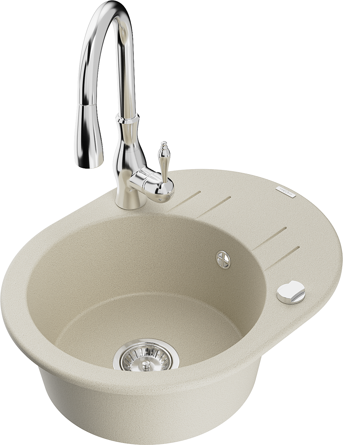 Mexen Kevin granito kriauklė su viena kamera ir nusausinimo lentyna bei virtuviniu maišytuvu Savita, smėlio - 6517-69-672601-00