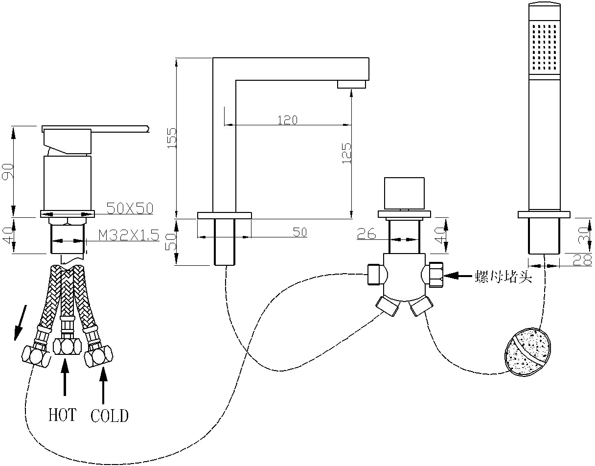 Akumuliatorių galima pritvirtinti prie vonios, esančios specialiai paruoštose skylėse. Šis metodas suteikia lengvą ir patogią prieigą ir leidžia greitai sureguliuoti srautą ir vandens temperatūrą. Estetinis sprendimas, pabrėžiantis vonios stilių.
