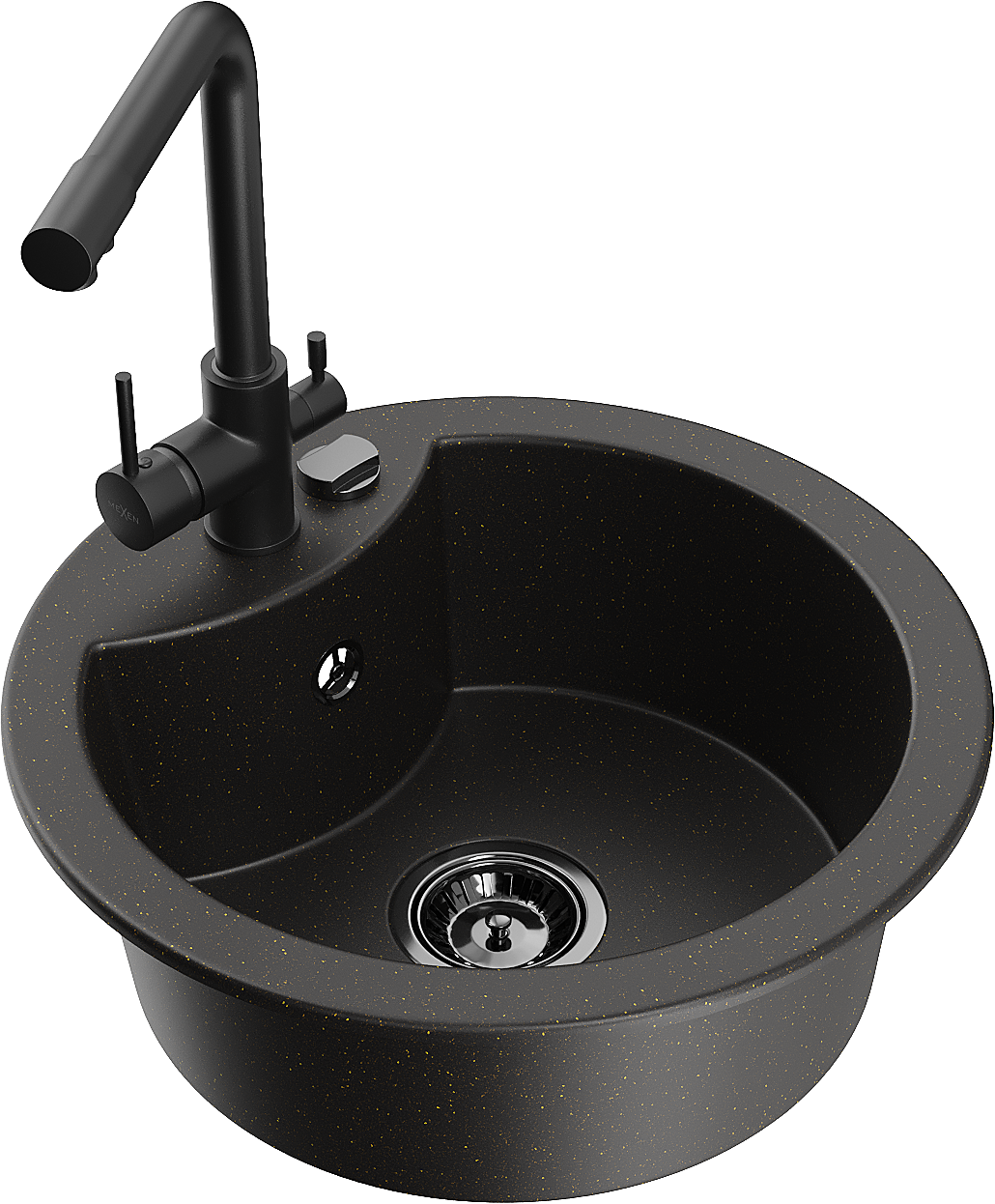 Mexen Diego vieno dubens granito virtuvės kriauklė su Duero maišytuvu, juoda/auksinis metalikas - 6512-75-671600-70-B