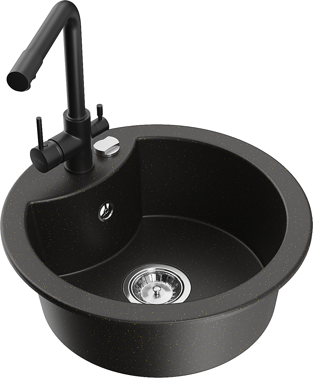 Mexen Diego granito plautuvė 1-dubeninė su virtuvės maišytuvu Duero, juoda/auksinis metalikas - 6512-75-671600-70