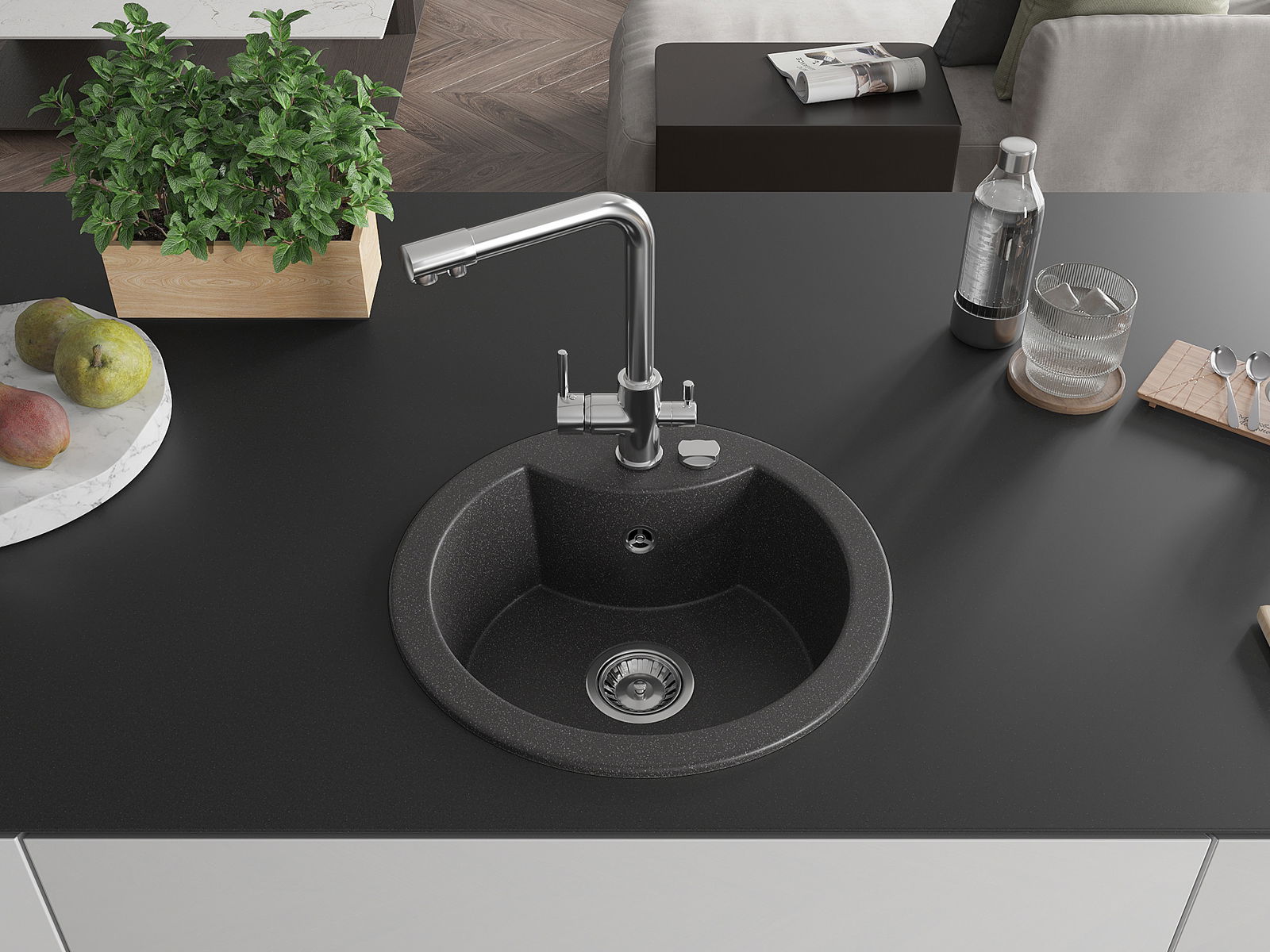 Kriauklės paviršius yra atsparūs dėmėms ir spalvos pasikeitimui, dėl kurio lengva valyti ir ilgą laiką išlaikyti savo spalvą. Estetinis ir praktiškai papildantis kiekvieną virtuvę.