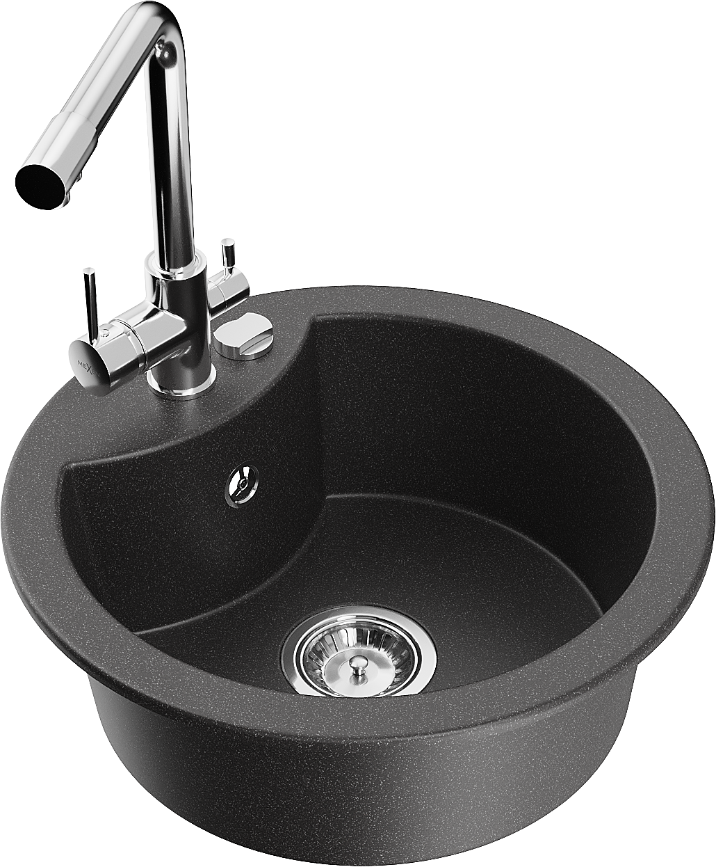 Mexen Diego granitinė virtuvės kriauklė 1-skyrius su virtuvės maišytuvu Duero, juoda taškuota - 6512-76-671600-00