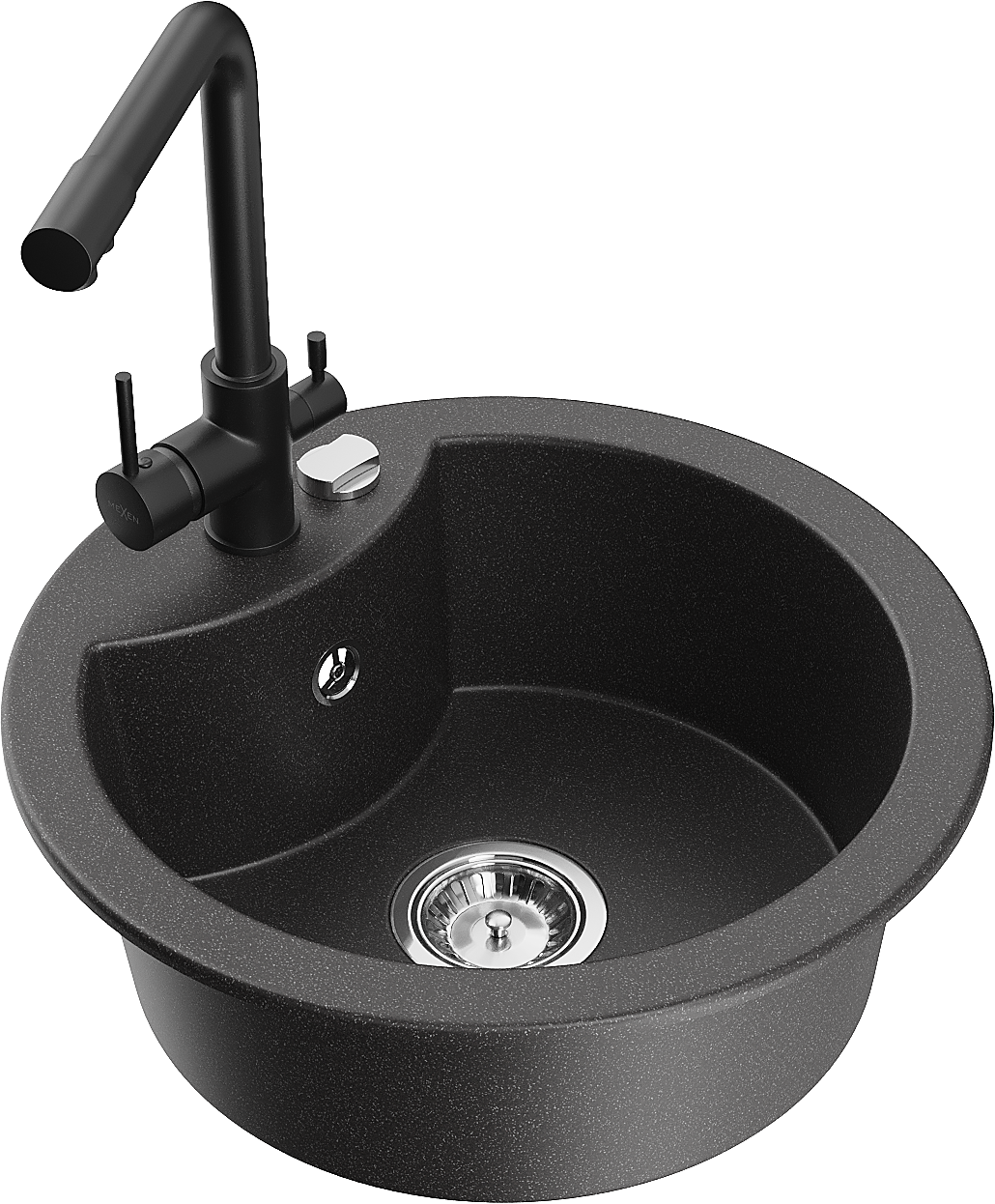 Mexen Diego granito plautuvė, 1 skyrius, su virtuviniu maišytuvu Duero, juodas su dėmėmis - 6512-76-671600-70