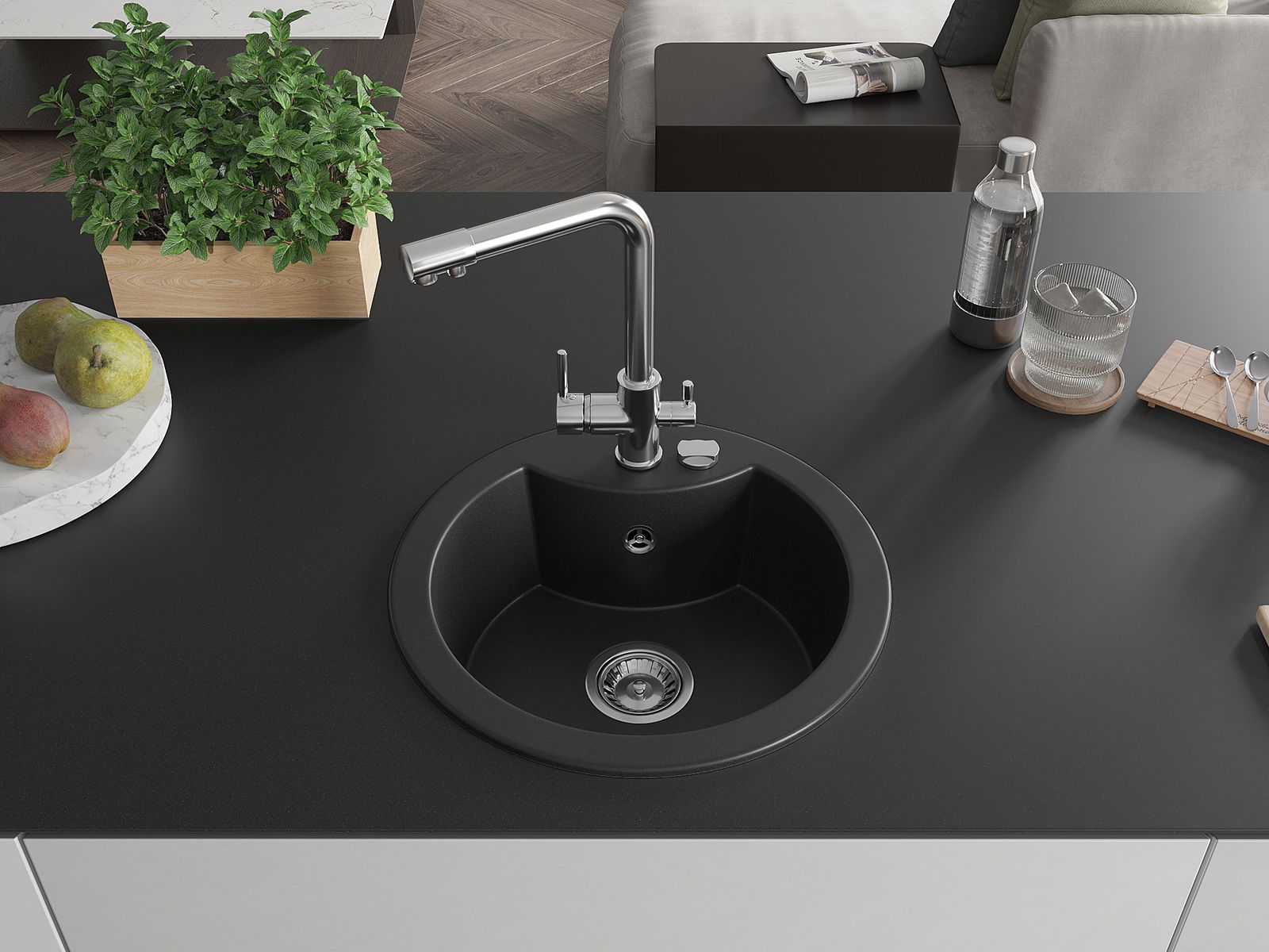Kriauklės paviršius yra atsparūs dėmėms ir spalvos pasikeitimui, dėl kurio lengva valyti ir ilgą laiką išlaikyti savo spalvą. Estetinis ir praktiškai papildantis kiekvieną virtuvę.