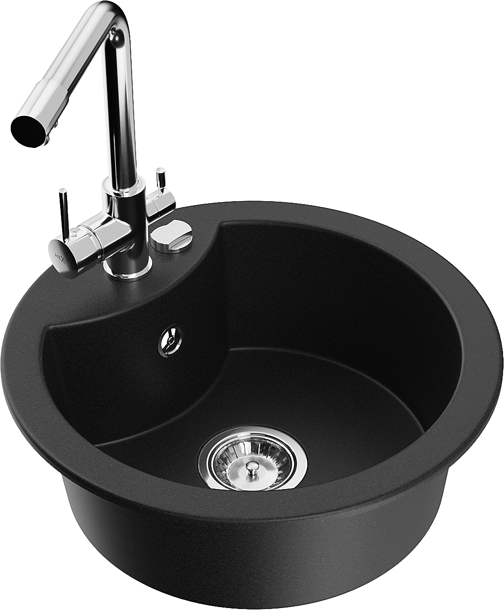 Mexen Diego vienos įdubos granito plautuvė su Duero virtuviniu maišytuvu, juoda - 6512-77-671600-00