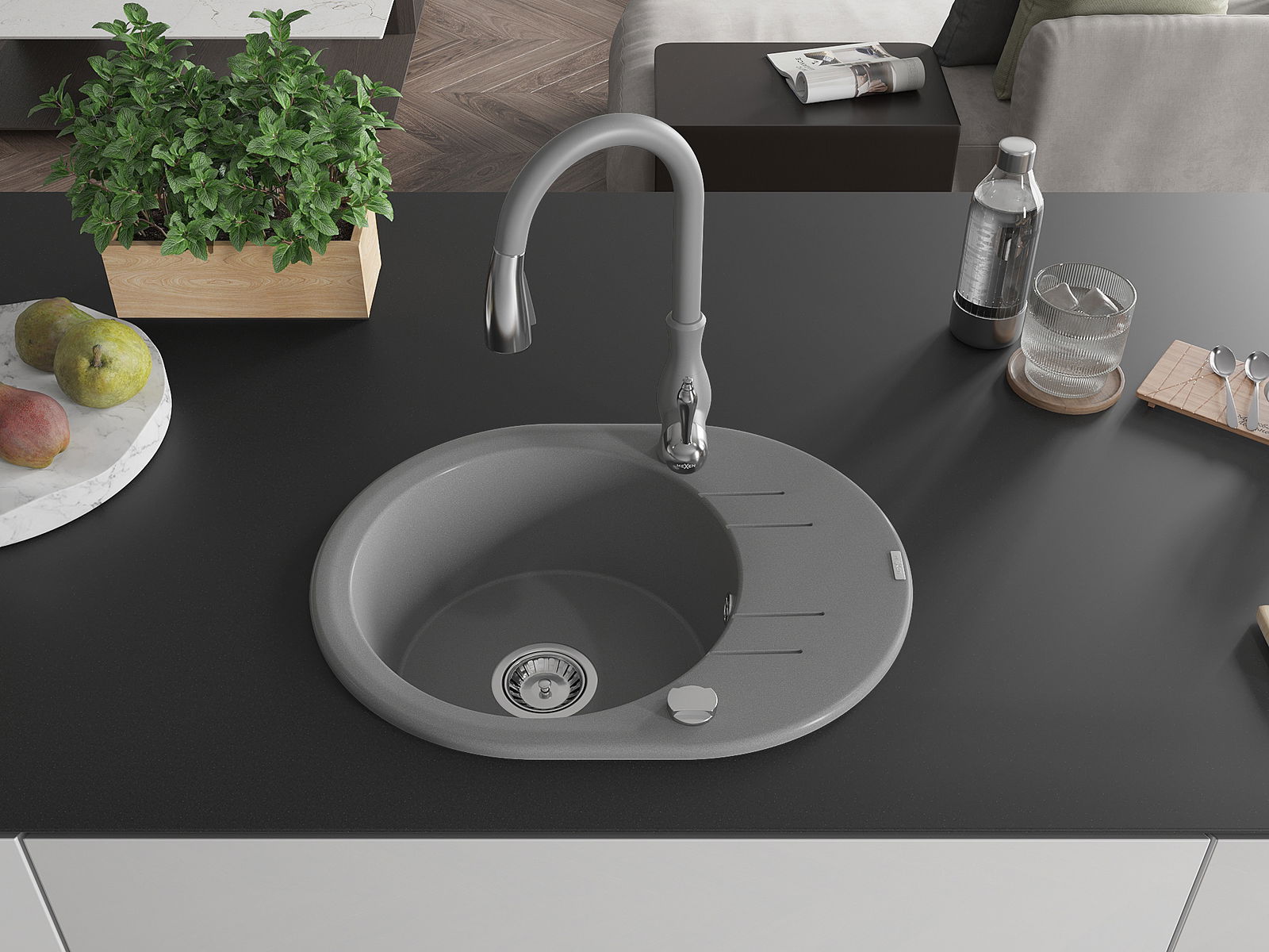 Kriauklės paviršius yra atsparus dėmėms ir spalvos pokyčiams, todėl jį lengva prižiūrėti ir jis išlaiko savo spalvą ilgą laiką. Estetiškai ir praktiškai papildo kiekvieną virtuvę.
