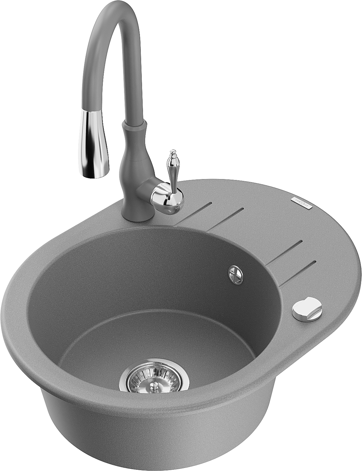 Mexen Kevin vieno dubens granitinė plautuvė su džiovykla ir virtuviniu maišytuvu Savita, pilka - 6517-71-672601-71
