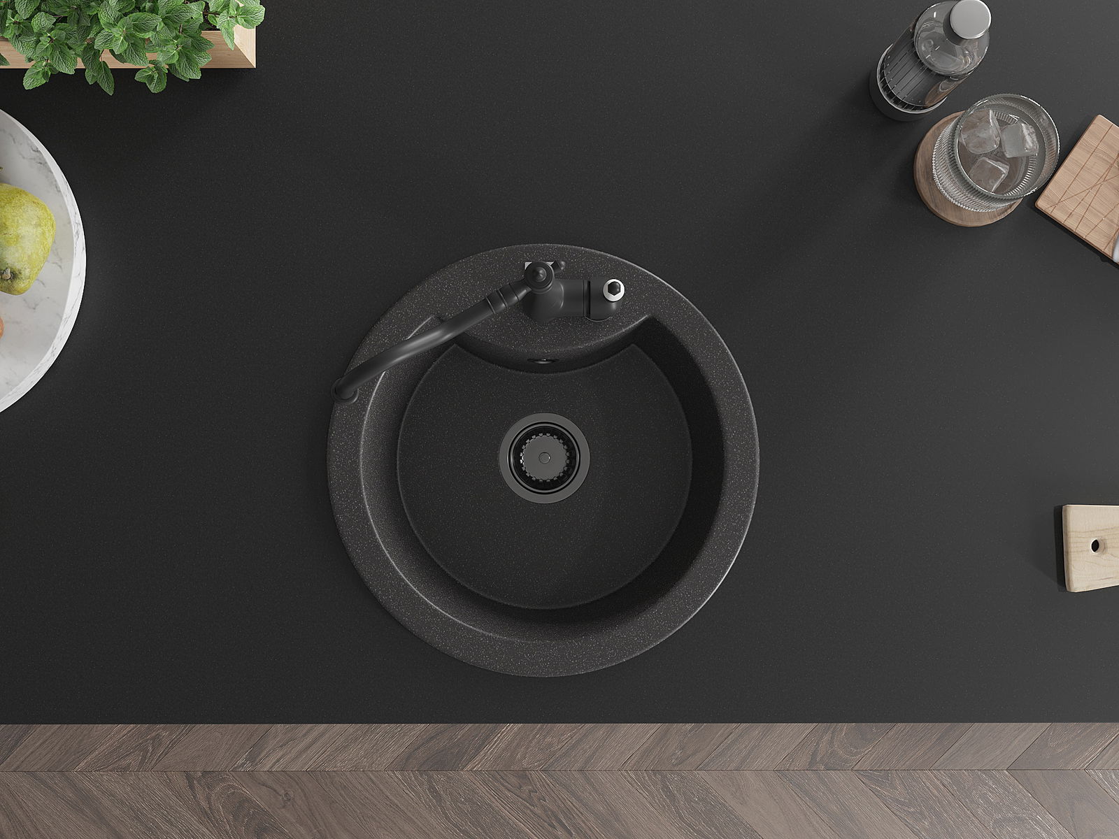 Mexen Diego granitinė vienos dalies plautuvė su virtuviniu maišytuvu Carla, juodas dėmėtas - 6512-76-670700-70-B