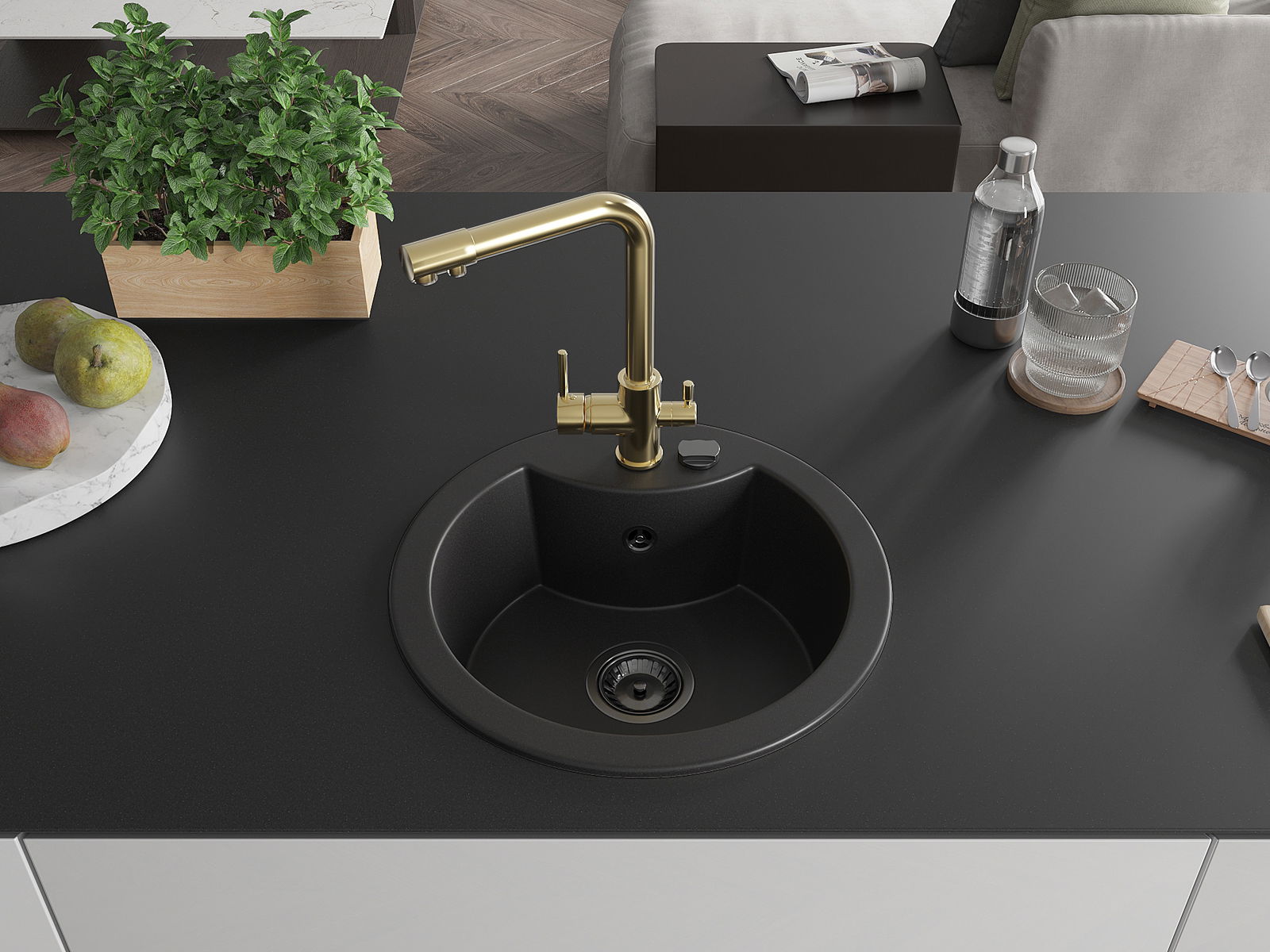 Kriauklės paviršius yra atsparūs dėmėms ir spalvos pasikeitimui, dėl kurio lengva valyti ir ilgą laiką išlaikyti savo spalvą. Estetinis ir praktiškai papildantis kiekvieną virtuvę.