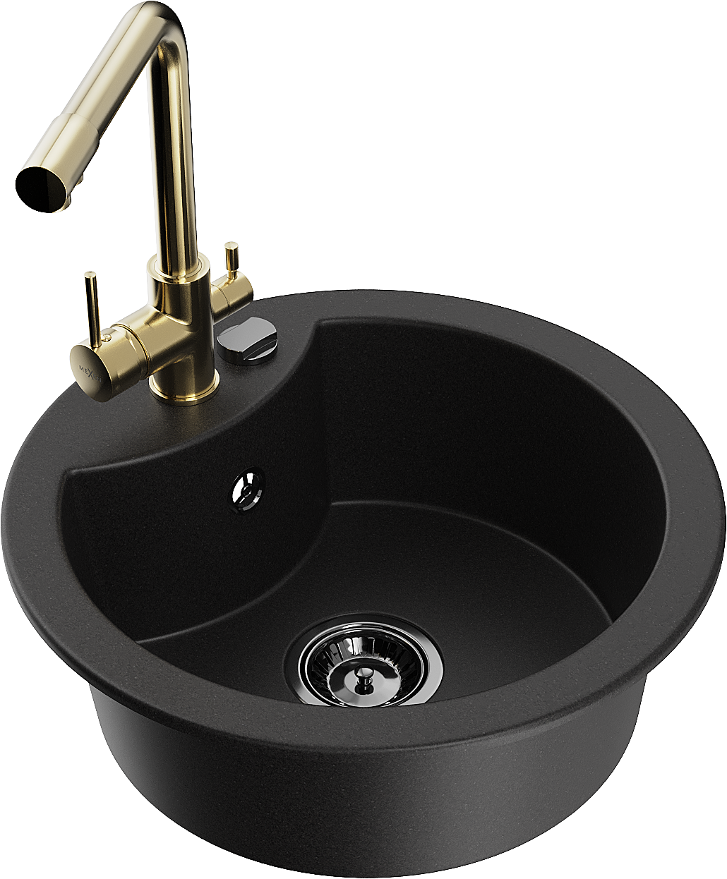 Mexen Diego granitinis vienos dalies plautuvė su virtuviniu maišytuvu Duero, juoda - 6512-77-671600-50-B