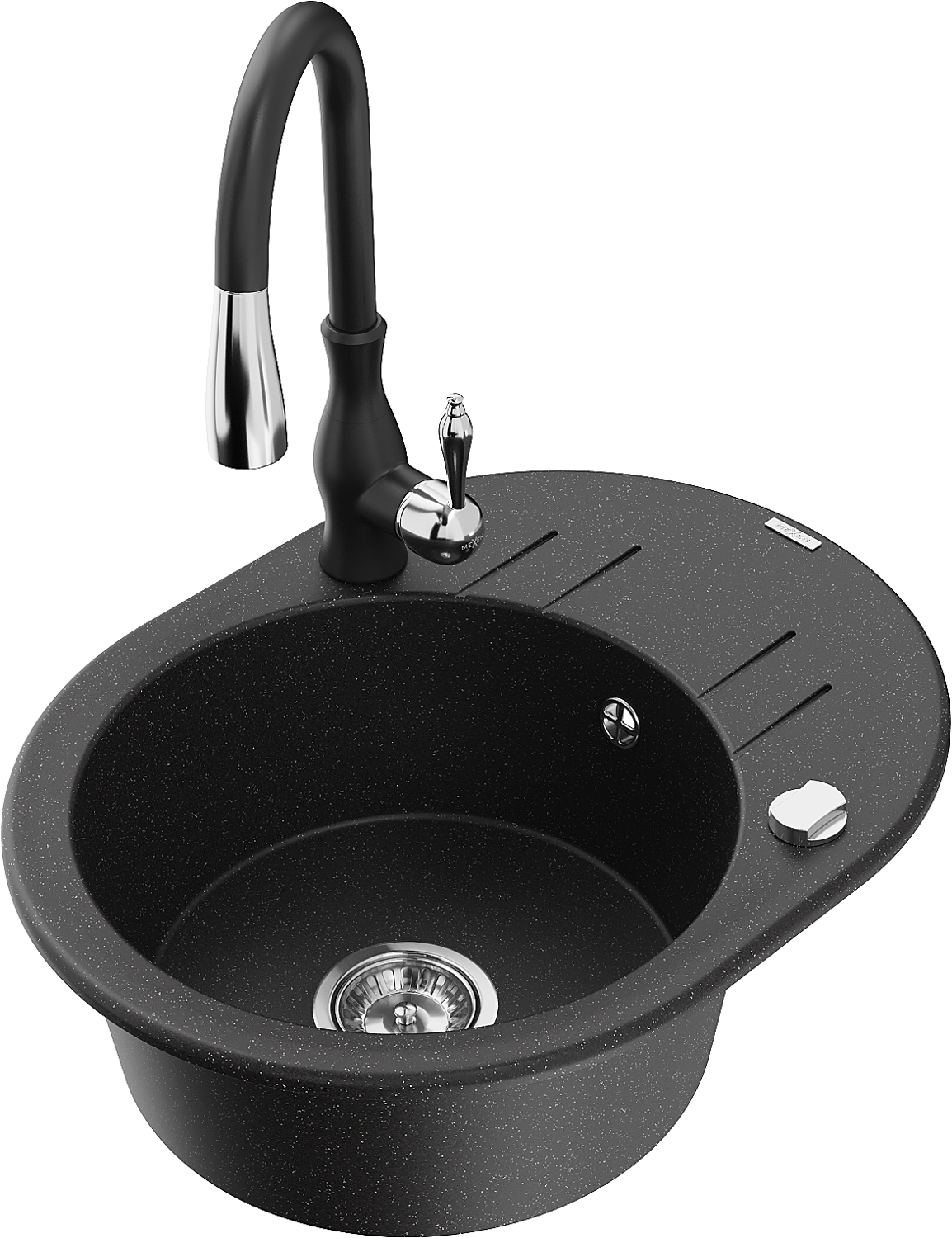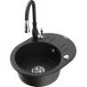 Mexen Kevin granitinė vienos plautuvės plautuvė su nusausintuvu ir virtuviniu maišytuvu Savita, juodo/sidabrinio metalo