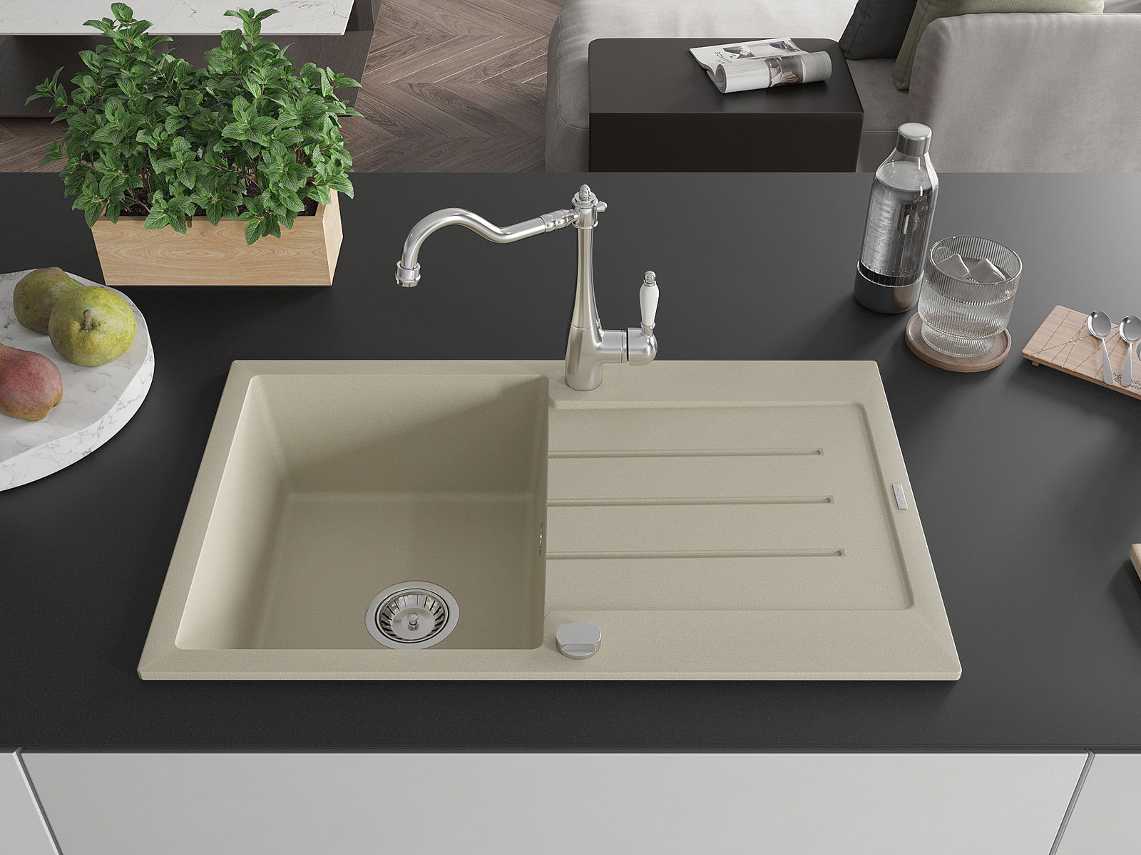Kriauklės paviršius yra atsparūs dėmėms ir spalvos pasikeitimui, dėl kurio lengva valyti ir ilgą laiką išlaikyti savo spalvą. Estetinis ir praktiškai papildantis kiekvieną virtuvę.